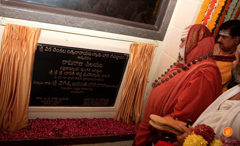 Jagadguru Shankaracharya Sri Sri Bharati Tirtha Mahaswamiji arrived at the holy town of Annavaram on 22nd January evening. After the Chandramoulishwara Puja, the Jagadguru inaugurated two new guest houses at the request of temple authorities.