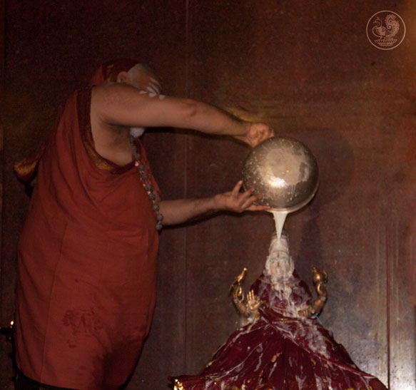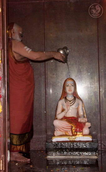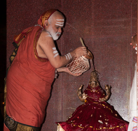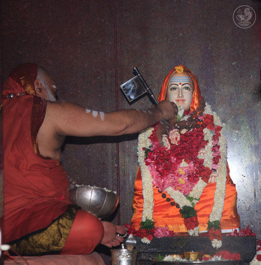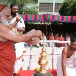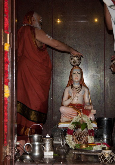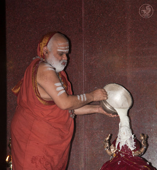 The following day, on 29th Jun 2012, the Jagadguru performed the Kumbhabhisheka of Lord Mahaganapati, Sri Adi Shankara and Goddess Sharada. In the evening , during a function was organized to commemorate the Kumbhabhisheka, the Jagadguru blessed the devotees with a Anugraha Bhashanam. The Jagadguru mentioned that on the occasion of the Kumbhabhisheka, everyone becomes the recipient of the Grace of Mother Sharadamba. A mother has the same amount of love and affection towards all her children. Even for a child that doesn’t show any liking for the mother, she only showers affection. This is the greatness of a mother. Sri Adi Shankaracharya says – कुपुत्रो जायेत क्वचिदपि कुमाता न भवति (A bad son may be born, but there can never be a bad mother).