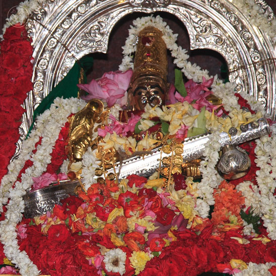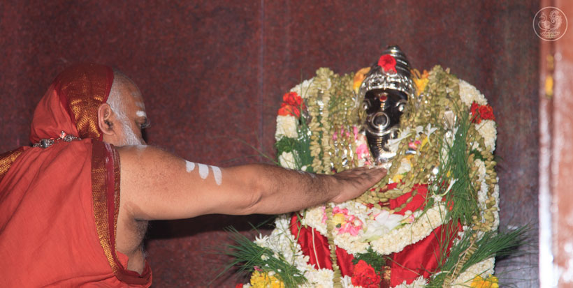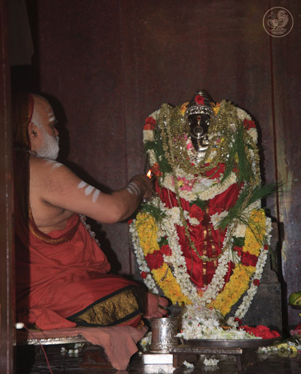 Sri Mahasannidhanam had installed Sharadamba, Adi Shankara and Maha Ganapati at the Sringeri Jagadguru Pravachina Mandiram, Raja Annamalai Puram in the year 1969. The temple had been constructed by Sri Vaidya Subramaniya Iyer, an ardent disciple of the Mahaswamiji on whom the Mahaswamiji had conferred the title “Dharmatma”. From then on, people in the area have been blessed to have Darshan of Sharadamba, Adi Shankara and Maha Ganapati.