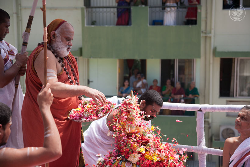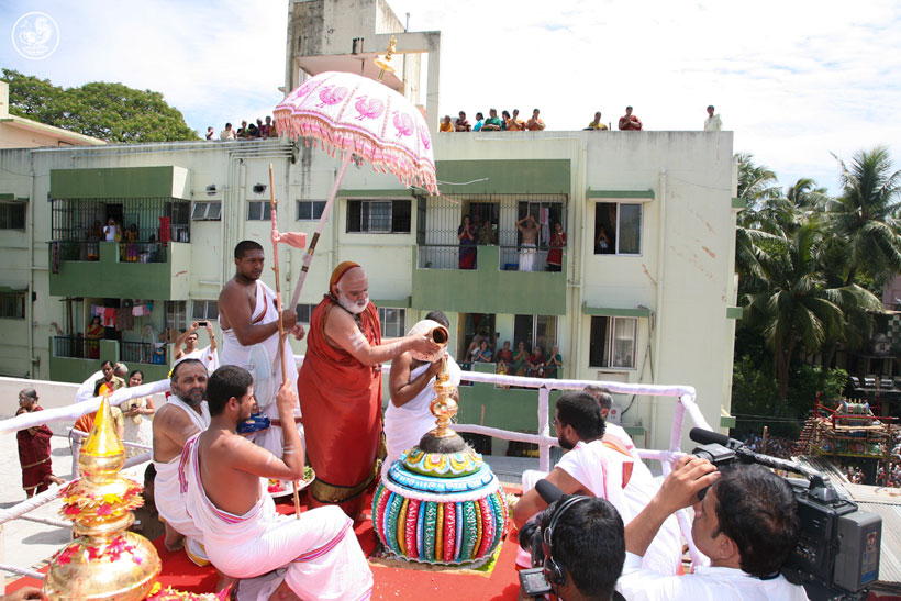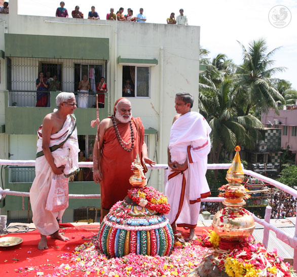 The Jagadguru then observed the Prathama Ekadashi following Kashta Mounam on 30th June 2012 and blessed the devotees on Dwadashi day (July 1 2012) before starting in the afternoon for Sudharma in Mylapore to observe Chaturmasya.