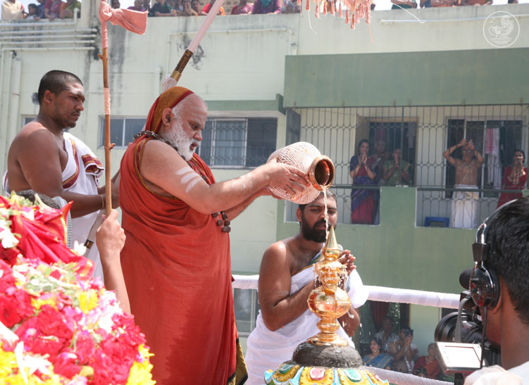 The Jagadguru mentioned that the second Kumbhabhishekam was arranged by the Dharmatma’s sons Sri Vaidyanathan and Sri Jayaraman and had been performed by Him in the year 1995, after a period of 26 years. This year, the opportunity has come for the third Kumbhabhishekam of the temple.