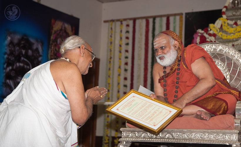 Talking about the family of the Dharmatma, the Jagadguru mentioned that, in some instances, the father has lot of Bhakti but his children don’t reflect the same level of Bhakthi. In other instances, its the reverse. But in the family of Dharmatma Vaidya Subramania Iyer, he and his sons had the same level of Bhakti towards God and Guru.