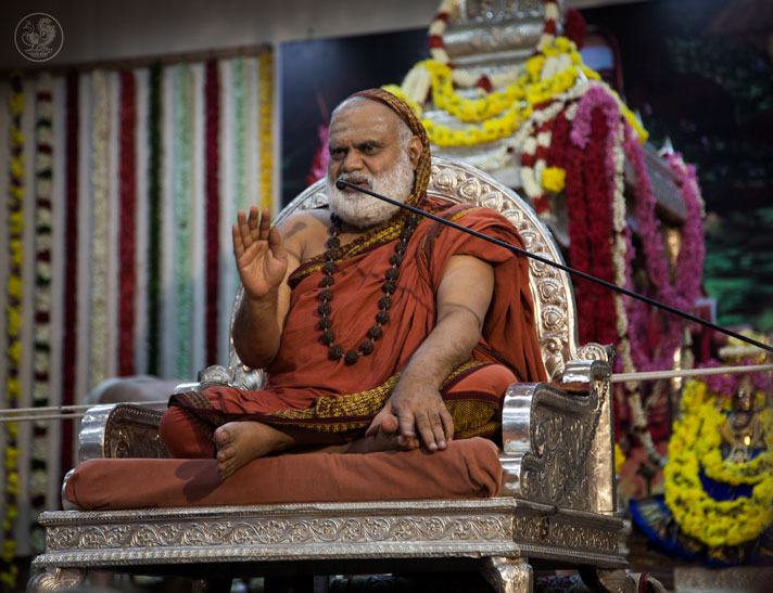 We should pray to Sharadamba that She bless us with the heart to follow the do’s and don’ts mentioned in the Shastras. Only if we have the blessings of the Goddess Sharadamba, we will be able to go in the right direction. We should pray that she bless us with the heart that will not go in the wrong direction. If we have the mind to perform our duties, and refrain from what is prohibited, we will reach a good state of life. The Jagadguru noted that the lives of many are right now contrary to this principle.