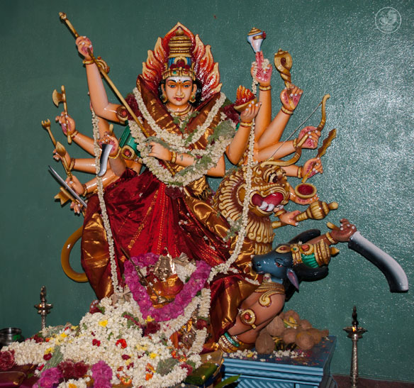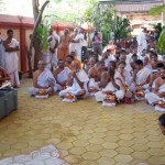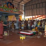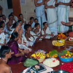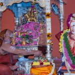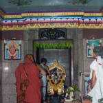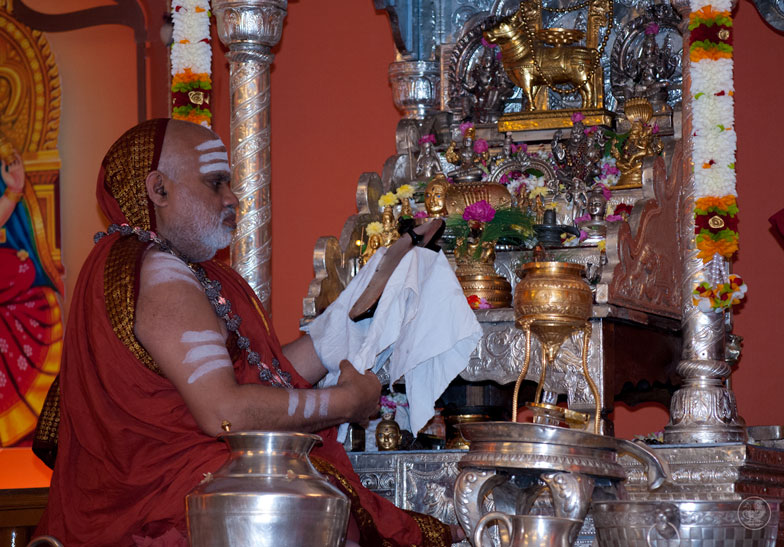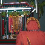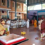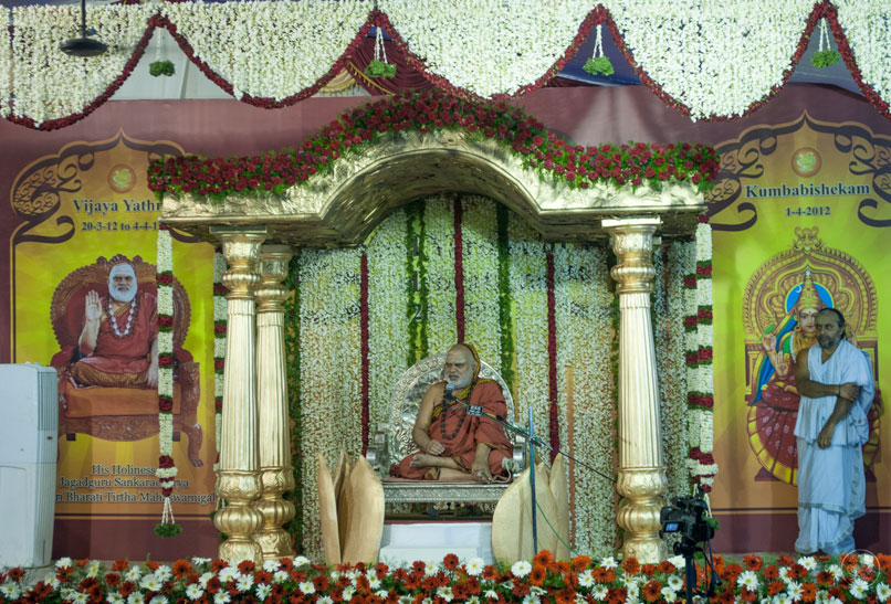 The Kumbhabhisheka Celebrations at Sharadalayam, Sringeri Shankara Math, Coimbatore began with the Sankalpa in the Jagadguru’s presence on 30th March 2012. On 1st April, the Jagadguru performed the Punah-Prathishtha Kumbhabhisheka of Goddess Sharada, Lord Mahaganapati, Lord Balamurugan and Sri Adi Shankaracharya.