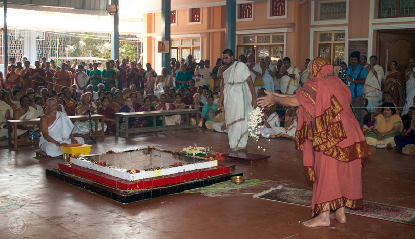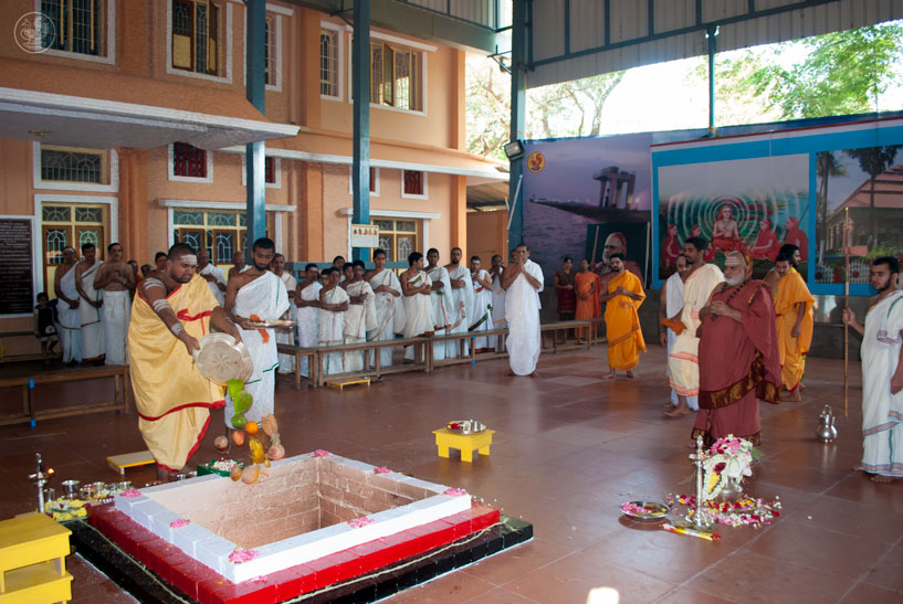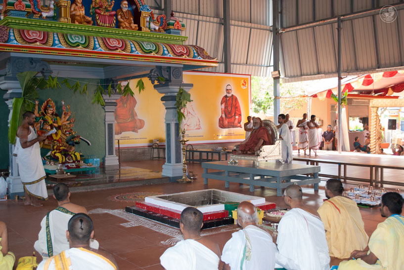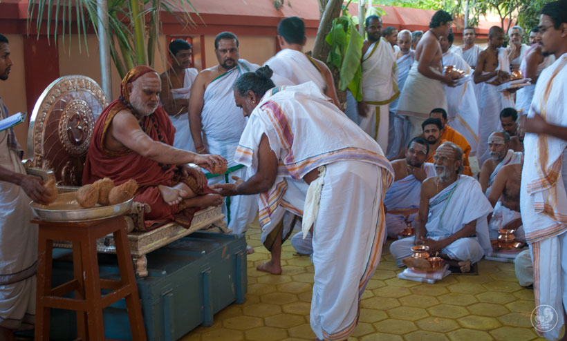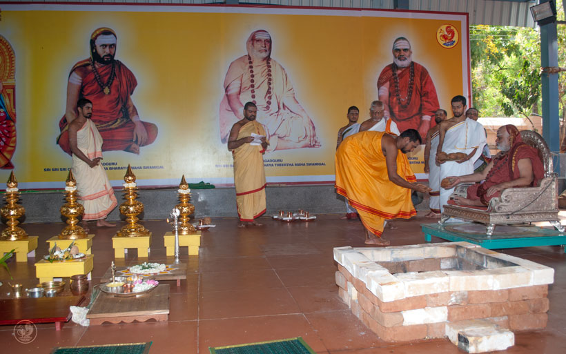 The 62nd Vardhanti Celebrations of Jagadguru Shankaracharya Sri Sri Bharati Tirtha Mahaswamiji began on 24th March with the performance of the Sahasramodaka Homa in the premises of Sharadalayam, Sringeri Shankara Math at Coimbatore. On 25th March, Sankalpa of Maharudra Yaga and the Shata Chandi Yaga took place in the Jagadguru’s presence.