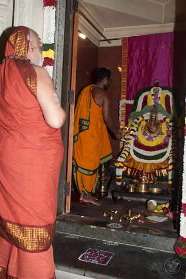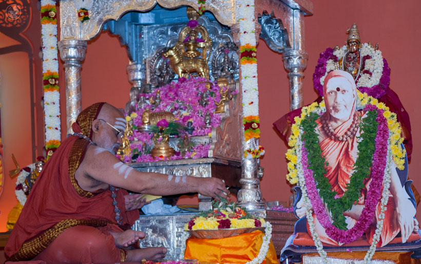 On 24th March, on the occasion of the 100th Aradhana of His Parameshthi Guru, Jagadguru Sri Sacchidananda Shivabhinava Narasimha Bharati Mahaswamiji, the 33rd Acharya of the Peetham, the Jagadguru performed a special elaborate Puja. The Puja was also conducted at Sringeri at the Adhishthanam of the Acharya. The Aradhana was also celebrated in great grandeur in the branches of the Peetham such as Srirangam and Mysore. The Jagadguru also released a short biographic documentary sketch titled, “The 33rd Jagadguru of Sringeri” on the occasion that is available for all to see at http://www.youtube.com/sharadapeetham