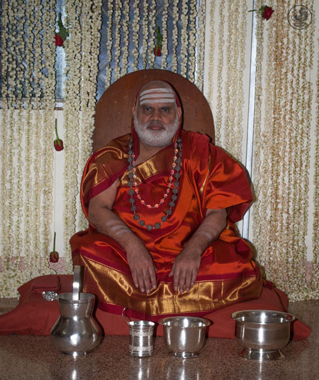 Jagadguru Shankaracharya Sri Sri Bharati Tirtha Mahaswamiji graced the Arsha Vidya Gurkulam, Anaikatti and was welcomed with Poornakumbha. After having Darshan of Sri Dakshinamurti, the Jagadguru was received by Swami Dayananda Saraswati, founder of the Gurukulam and teacher of Vedanta. Swami Dayananda Saraswati offered a garland of 62 Rudrakshas to the Jagadguru.