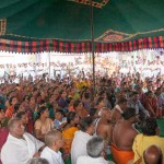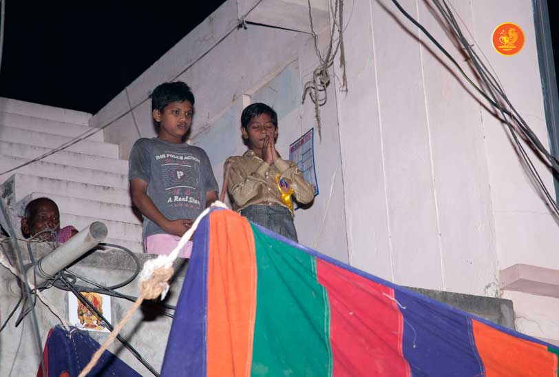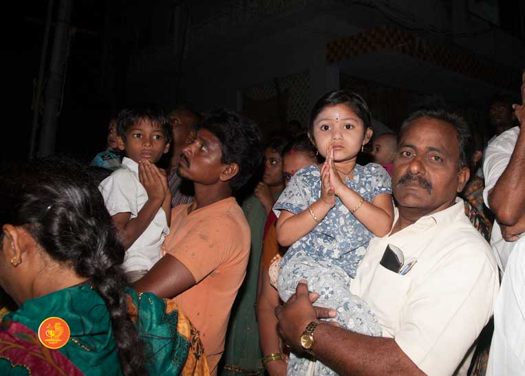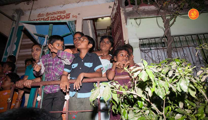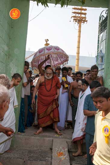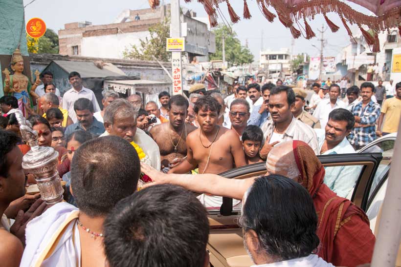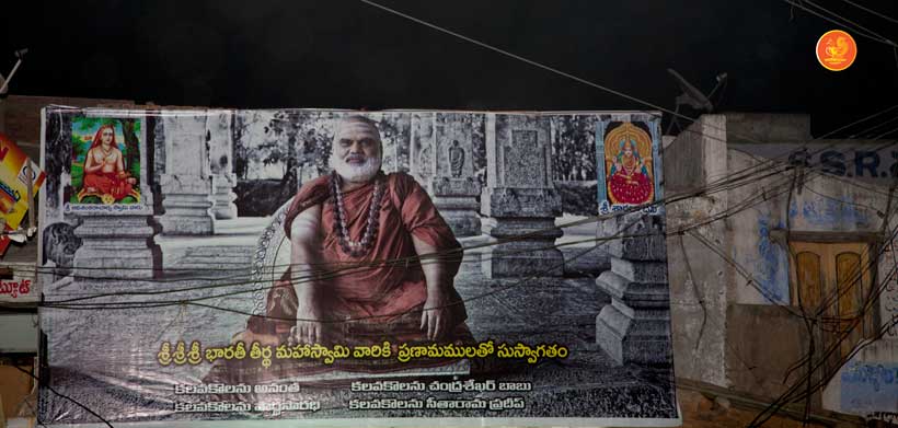 Jagadguru Shankaracharya Sri Sri Bharati Tirtha Mahaswamiji arrived at Darsi on the evening of March 18. Even though a procession had not been arranged, thousands of devotees welcomed the Jagadguru in great fervour and eagerly waited for the Jagadguru’s Darshan as the Jagadguru entered the town. The embodiment of compassion that He is, the Jagadguru immediately called for a procession to be arranged to enable the devotees to have Darshan. The Jagadguru patiently waited while the arrangements were made and a grand procession then took place to the great joy of devotees.