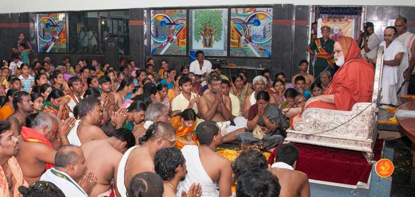 In His Anugraha Bhashanam, the Jagadguru said that He was coming to Darsi for the first time and the devotees had shown the extent of their heartfelt Guru-Bhakti on the occasion. The Jagadguru went on to highlight the greatness of Sri Adi Shankaracharya and explained His teachings succinctly, calling for strict adherence to Dharma for attaining Shreyas.