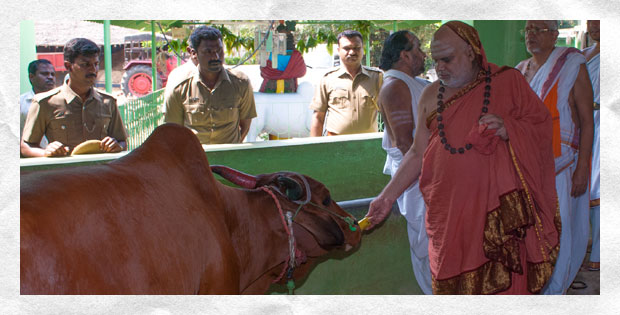 On the morning of 17th March, the Jagadguru had Darshan at the temple of Sri Lakshmi Narayanar in Lakkapuram Puthur and paid a visit to the temple’s Goshala. En route to Tiruppur from Erode, the Jagadguru graced the Gomati mills firm and blessed the devotees.