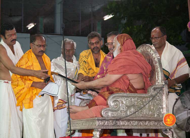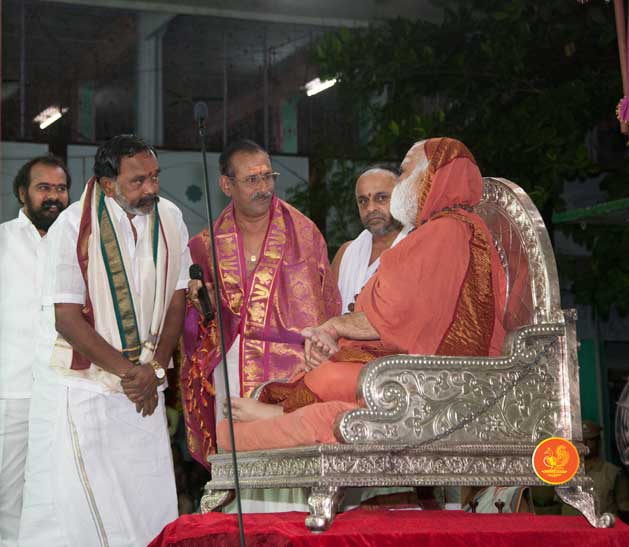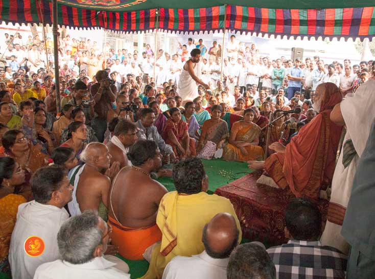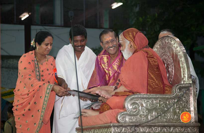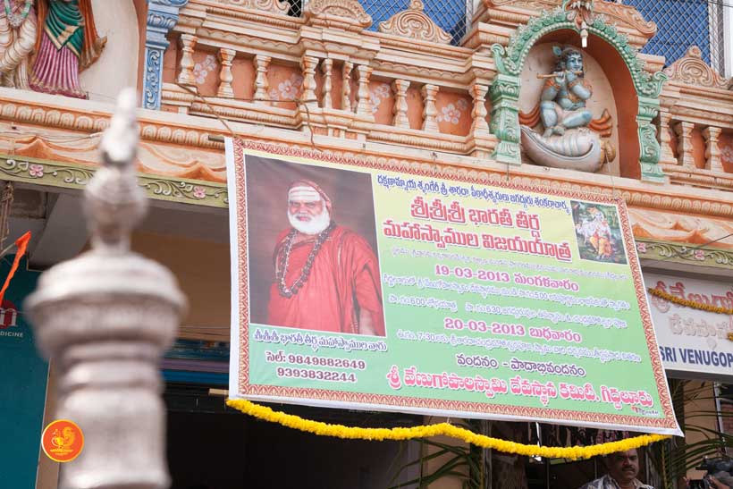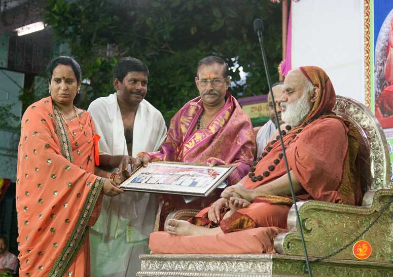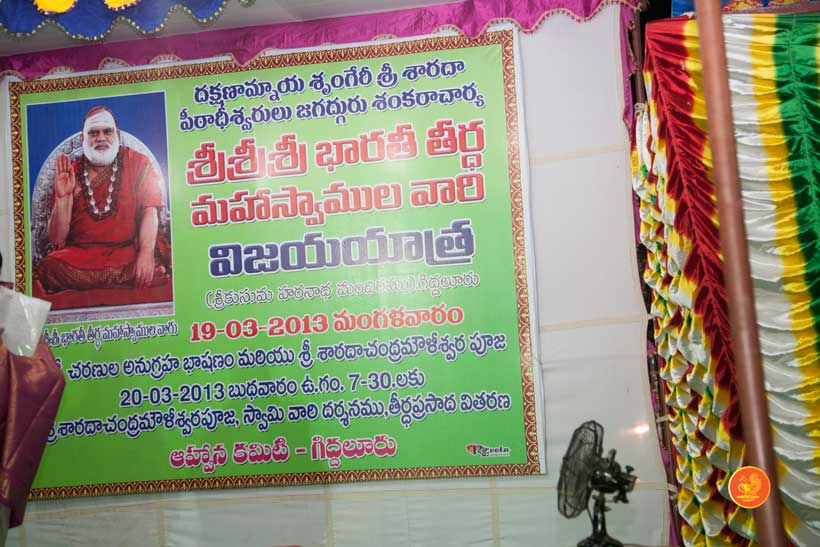 Jagadguru Shankaracharya Sri Sri Bharati Tirtha Mahaswamiji arrived at Giddaluru on 19th March to a devout welcome. After Dhuli Pada Puja and Swagata Patrika Pathanam, the Jagadguru blessed the devotees with an Anugraha Bhashanam.