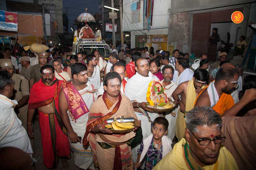 The following morning, the Jagadguru visited Sri Ganesha temple, Sri Lakshmi Narayanaswamy temple, Sri Pattabhirama Swamy temple, Sri Venugopalaswamy temple and Sri Vasavi Kanyaka Parameshwari temple for Darshan. The Jagadguru blessed the devotees with Darshan and Phala Mantrakshata and then started towards Allagadda in the late afternoon.