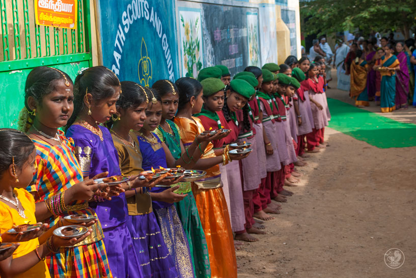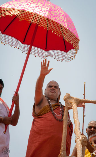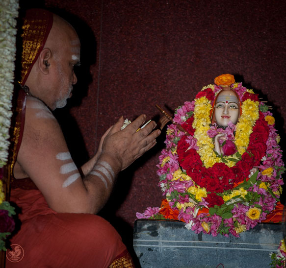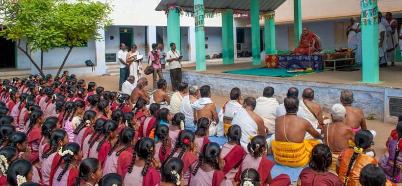 On arrival at Gobichettipalayam on 12th March evening, Jagadguru Shankaracharya Sri Sri Bharati Tirtha Mahaswamiji was received in the traditional manner with Poornakumbha Swagata. In His Anugraha Bhashanam to bless the devotees, the Jagadguru mentioned about the relationship between the Acharyas and Gobichettipalayam. The Jagadguru mentioned that while He and His Guru had graced Gobichettipalayam many times, His Parameshti Guru, Jagadguru Sri Sacchidananda Shivabhinava Nrisimha Bharati Mahaswamiji had observed Chaturmasya at Gobichettipalayam in 1907 after setting out from Sringeri towards Kalady, and His Parama Guru, Jagadguru Sri Chandrashekhara Bharati Mahaswamiji had observed Chaturmasya at Gobichettipalayam in 1924.