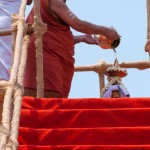 On 14th March, the Jagadguru did the Prasthishta Kumbhabhisheka of Lord Mahaganapati, Sri Adi Shankara and Goddess Sharada at the new Shankara Math. Blessing the gathering with an Anugraha Bhashanam, the Jagadguru said that human birth is extolled in the Shastras because only humans have the capacity to adhere to Dharma. It is natural to question what constitutes Dharma and how one can be a Dharmika. One has to follow certain principles to be a Dharmika. The Mahaswamiji said one should never be proud of one’s wealth, youth, education or power. Have we not seen people, who were once healthy, fall down to being ordinary citizens? Bhima’s pride in his power was humbled when he tried in vain to move the tail of Hanuman, who had assumed the form of an elderly monkey.