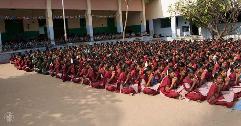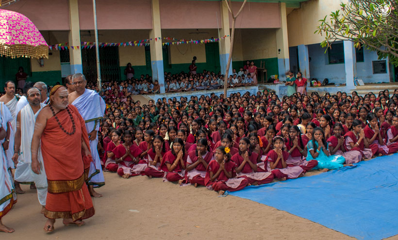 On 15th morning, the Jagadguru graced the Sharada Vidyalaya school and blessed the children. The children were elated when the Jagadguru Himself taught them the shloka on Adi Shankaracharya “Shruti Smriti Puraanaam …” and directed that it be part of their daily prayers.