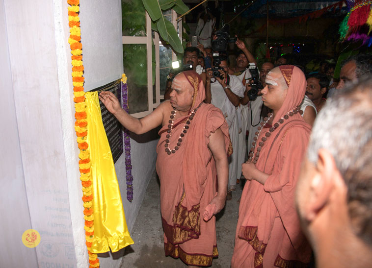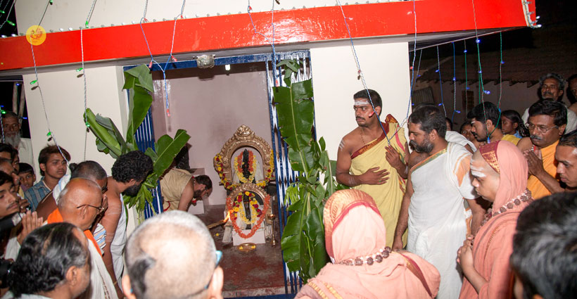 Jagadguru Shankaracharya Sri Sri Bharati Tirtha Mahasannidhanam and Jagadguru Sri Sri Vidhushekhara Bharati Sannidhanam reached Hebbasuru on the evening of March 13, 2017. The Jagadgurus were received at the entrance of the Parvati Sameta Prasanna Nanjundeshwara Swamy temple where they had Darshan. Sri Mahasannidhanam and Sri Sannidhanam then proceeded to the Sringeri Shankara Math in Hebbasuru and had Darshan of Goddess Sharadamba, Sri Mahaganapati, Sri Adi Shankaracharya, Subrahmanya and Sri Rama. Sri Mahasannidhanam inaugurated “Sri Bharati Tirtha Kripa” building of the Math.