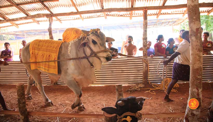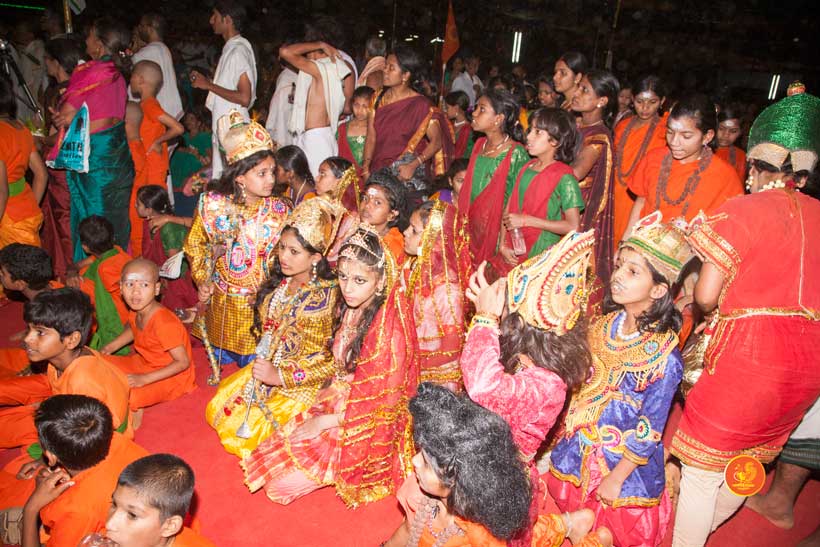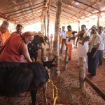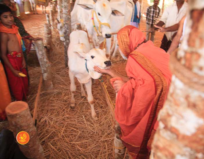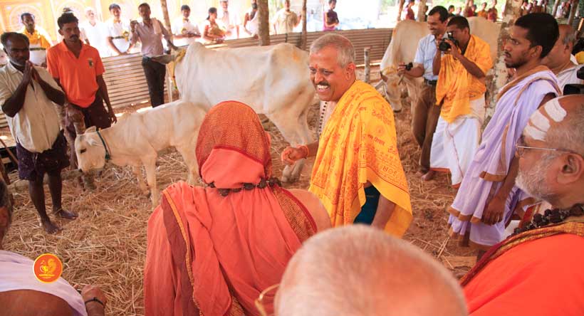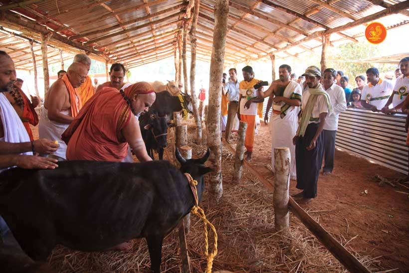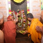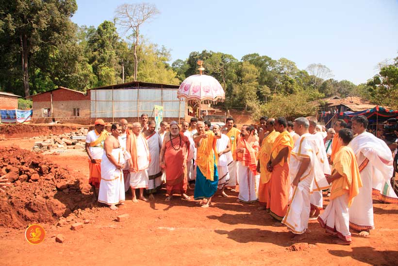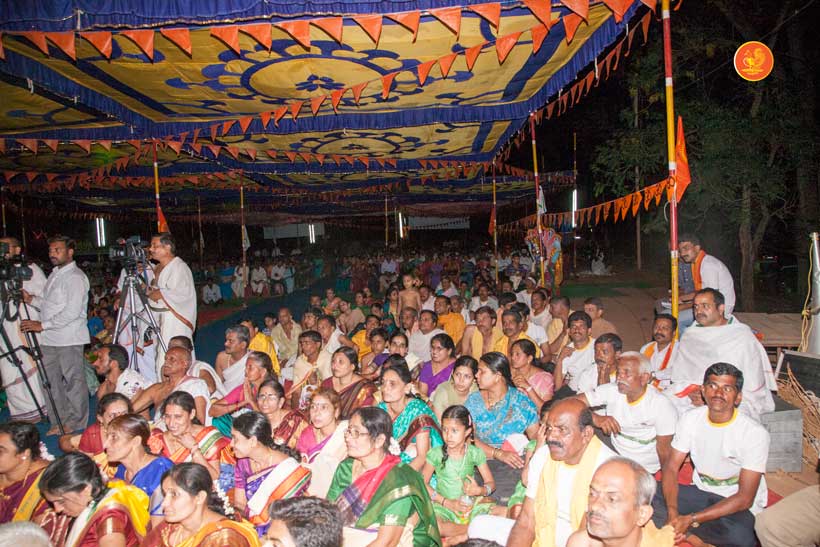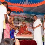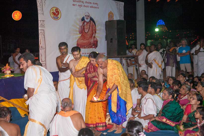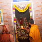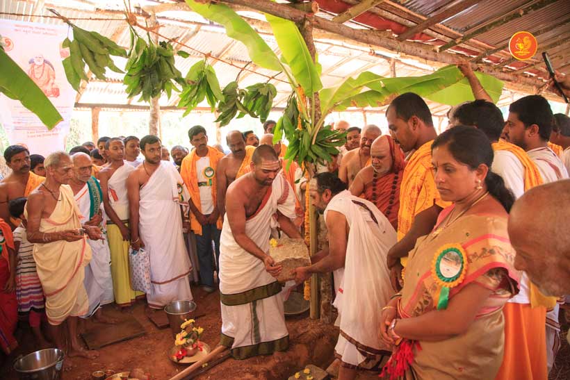 The following morning, the Jagadguru had Darshan of Sri Uma Maheshwara in the Balaalayam. The Jagadguru also had Darshan of Sri Veerabhadra and Sri Mahishasuramardini. The Jagadguru then witnessed the restoration and construction activity for the temples of Sri Uma Maheshwara, Sri Prasanna Narayana, Goddess Kali and Sri Lakshmi Ganapati. The Jagadguru in His morning Anugraha Bhashanam spoke about the Grace of Bhagavan in our lives for us to attain success in our endeavours and to achieve Shreyas. The Jagadguru provided a number of reasonings to drive home this fact. Going about our lives with unflinching devotion will ensure that our lives are purposeful. The Jagadguru then specially blessed Sri CM Narayana Shastry and invoked the blessings of Goddess Sharada and Lord Chandramoulishwara for the restoration work at Hosagunda.