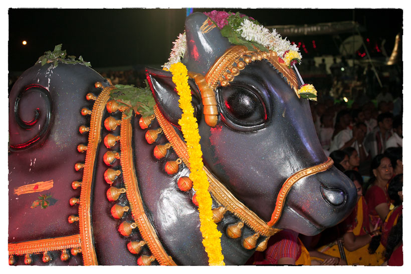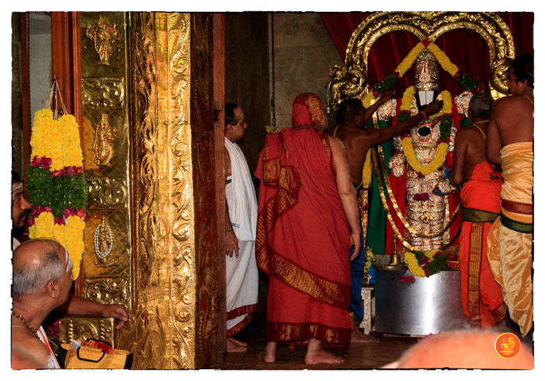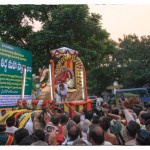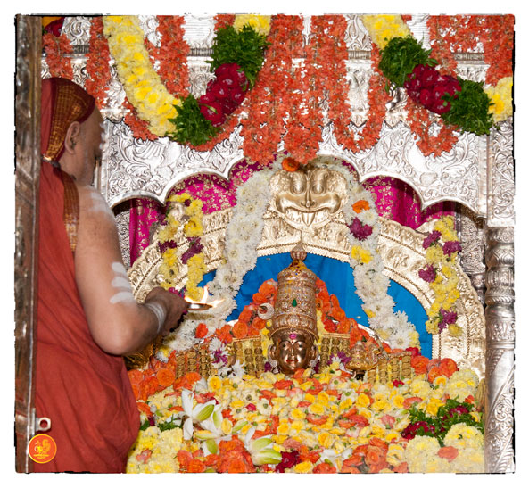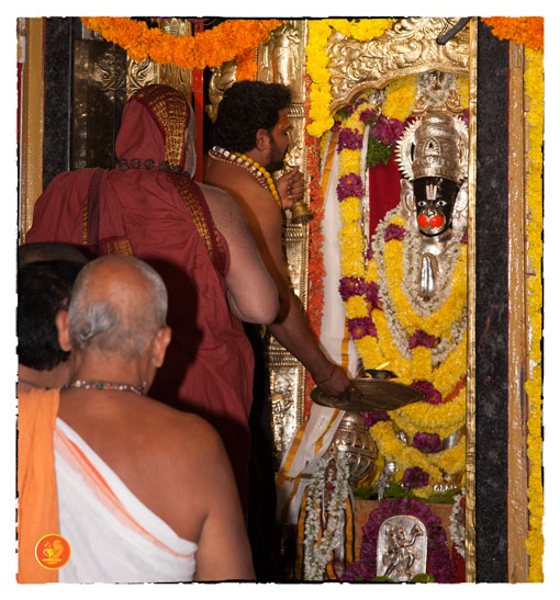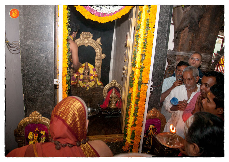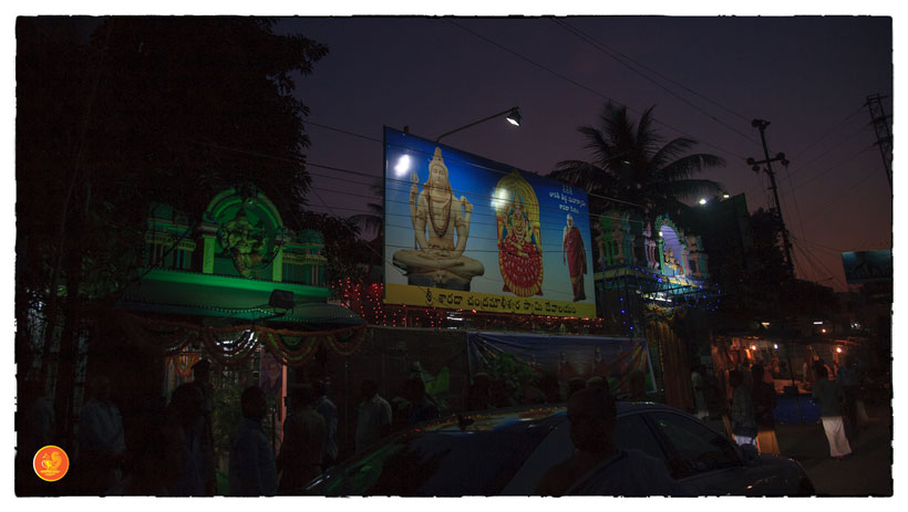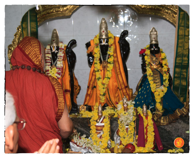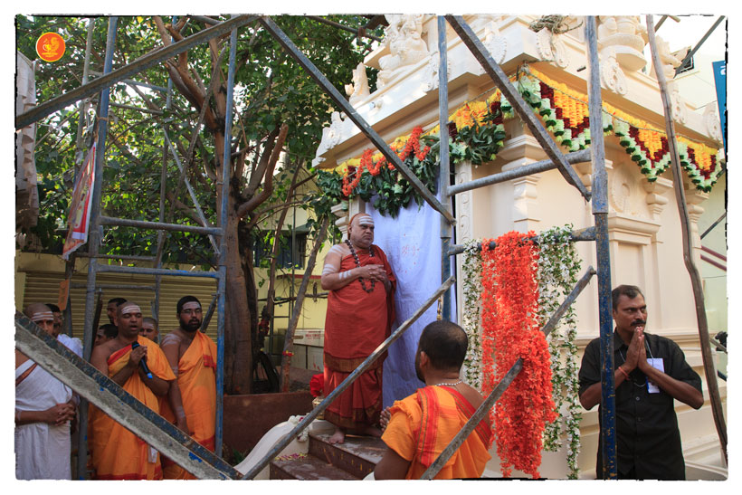 On the evening of November 27th, the Jagadguru visited three temples affiliated to Sri Sringeri Peetham: Sri Panchamukha Anjaneya Temple at R.T.C. Cross Road, Sri Satyanarayana Temple at Ashok Nagar and Sri Vijaya Ganapati Temple, Indira Park.