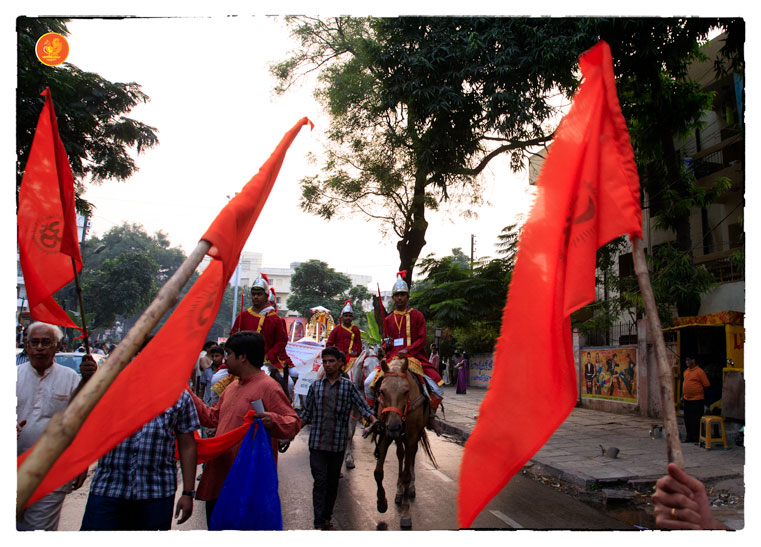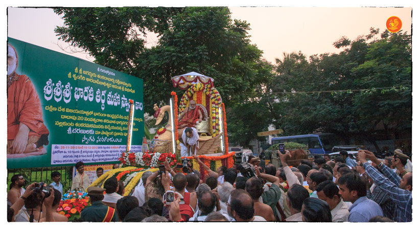 After gracing the city for 20 days, the Jagadguru started from Nallakunta on 15th December evening. The Jagadguru had Darshan of Goddess Sharada, Sri Adi Shankaracharya and Sri Shakti Ganapati at the newly installed temple, and started towards Secunderabad.