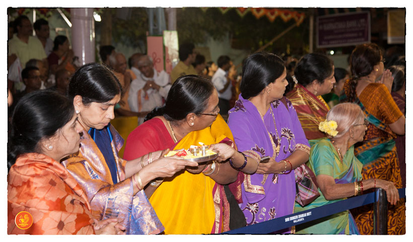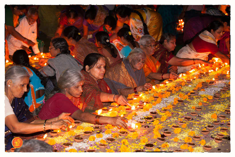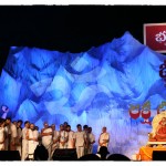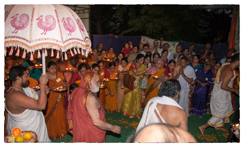 The stage was elaborately decorated to resemble the magnificent setting of the Himalayas. The Jagadguru initiated the Laksha Deepotsava by lighting the first lamp. Devotees followed enthusiastically to light a total of hundred thousand lamps. In His Anugraha Bhashanam, the Jagdguru highlighted the significance behind lighting a lamp, which is a symbol of knowledge in the tradition of Sanatana Dharma. The Upanishadic supplication – तमसो मा ज्योतिर्गमय – thus means “Lead me from the darkness of ignorance to the light of knowledge”. The practice of lighting a lamp at the beginning of any venture is to remind ourselves of this supplication. Many have forgotten this tradition behind the significance of lighting a lamp and instead resort to cutting ribbons to inaugurate new ventures. Everyone must know our tradition and realize the symbolism.