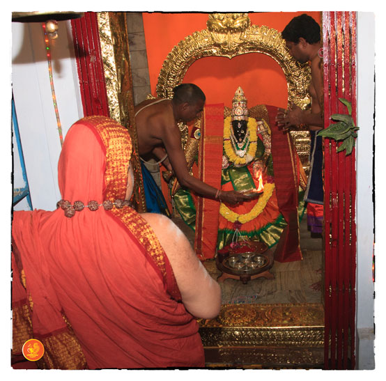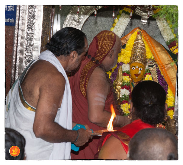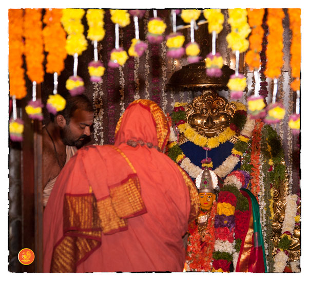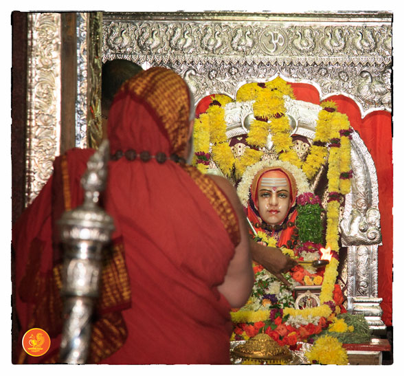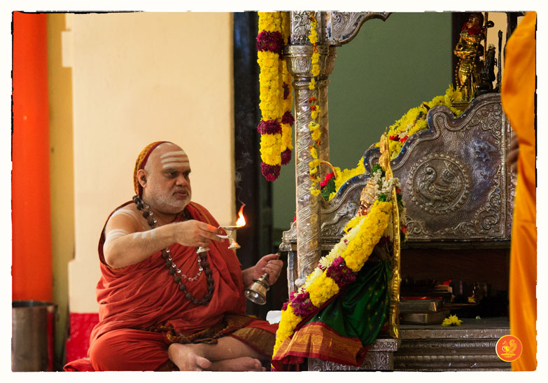 On the evening of November 28th (Karthika Pournami day), the Jagadguru lit a silver lamp in the evening and had Darshan of Goddess Sharada in the Nallakunta Shankara Math.