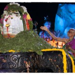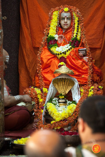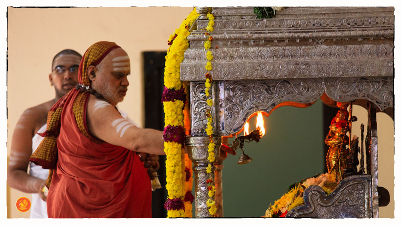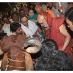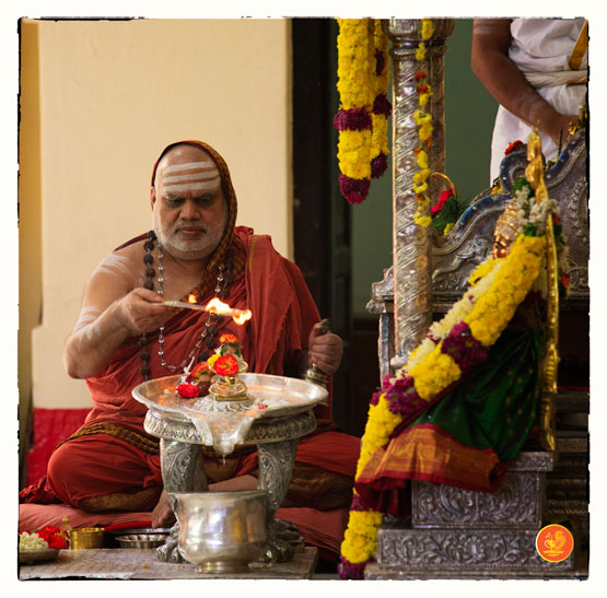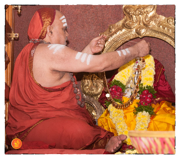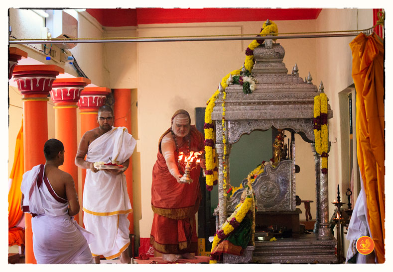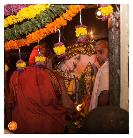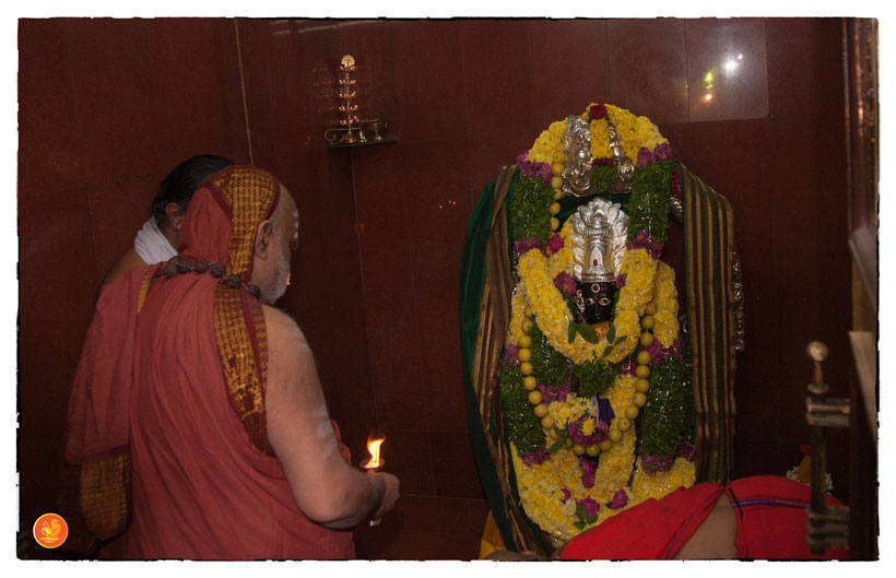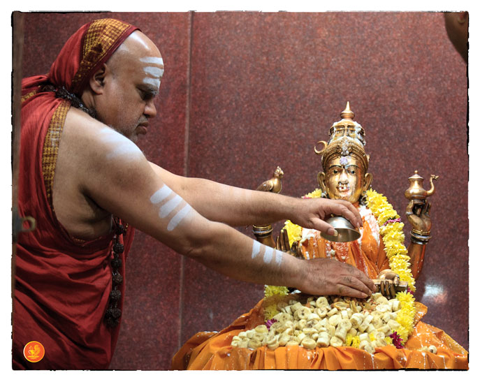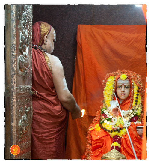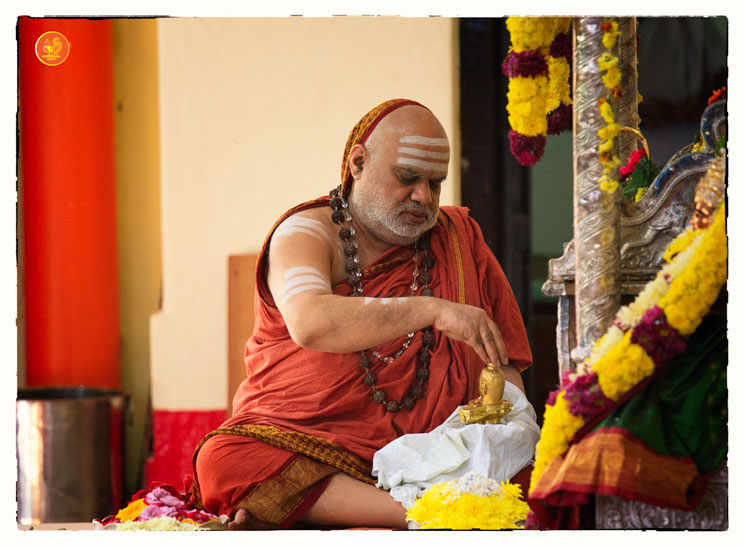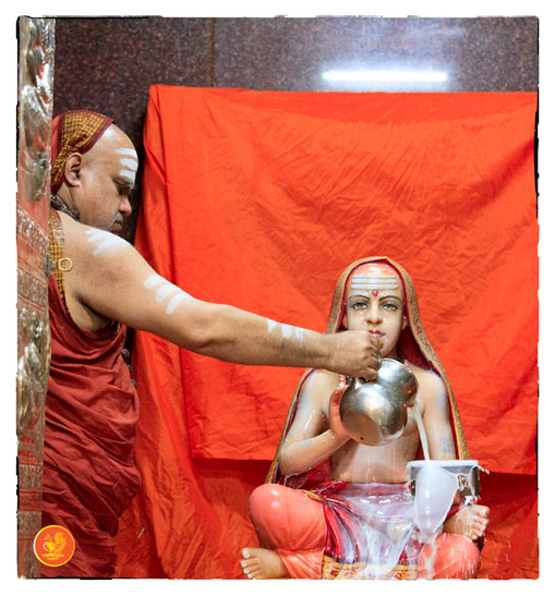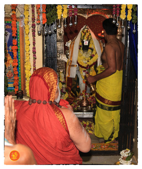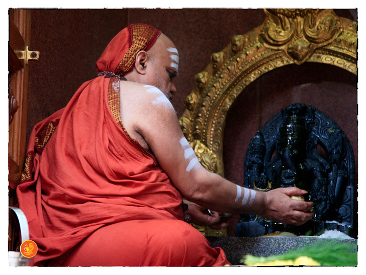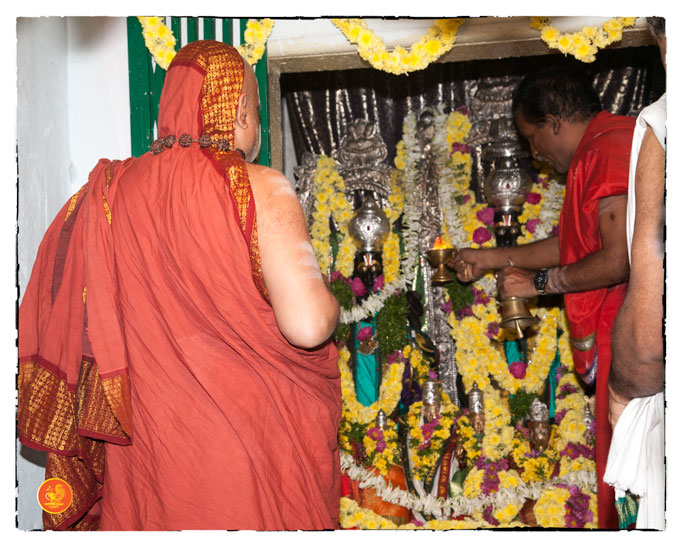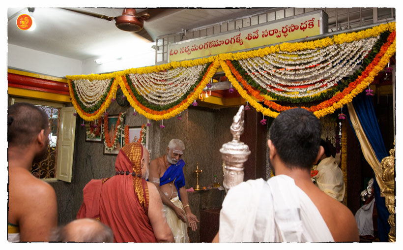 The Jagadguru performed the Karthika Somavara Puja on 26th November, 3rd December and 10th December at the Sringeri Shankara Math in Nallakunta. On each of these days, devotees turned up in large numbers to witness the Jagadguru perform the elaborate Puja to Sri Chandramoulishwara Sphatika Linga from noon until 2:30 pm. The Jagadguru offered worship to Lord Chandramoulishwara by performing Panchamrita Abhisheka followed by Abhisheka to the chants of Sri Rudram, Purusha Suktam and hymns from the Mahanarayana Upanishad.