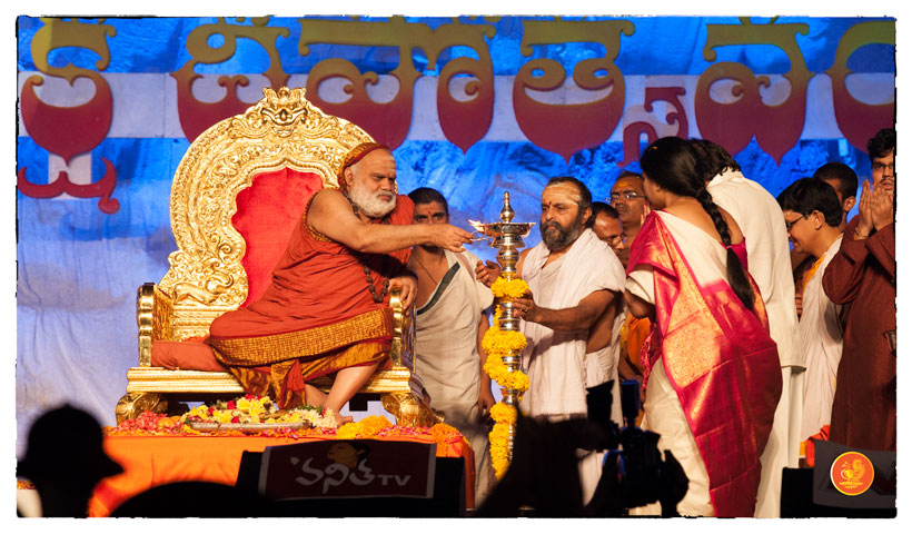 On November 26, the Jagadguru graced the Laksha Deepotsava festivities organized by Bhakthi TV. Tens of thousands of devotees took part in the function organized at the NTR stadium grounds. In his address, Swami Paripoornananda recounted his experiences with the Jagadguru stating that he sees Sri Adi Shankaracharya Himself in the Jagadguru. The Swamiji said that the Jagadguru is an inspiration for all Sadhakas as the Jagadguru is an embodiment of Vairagya.