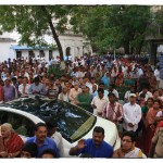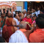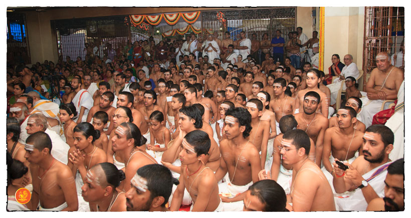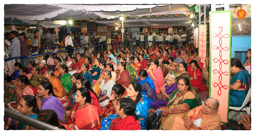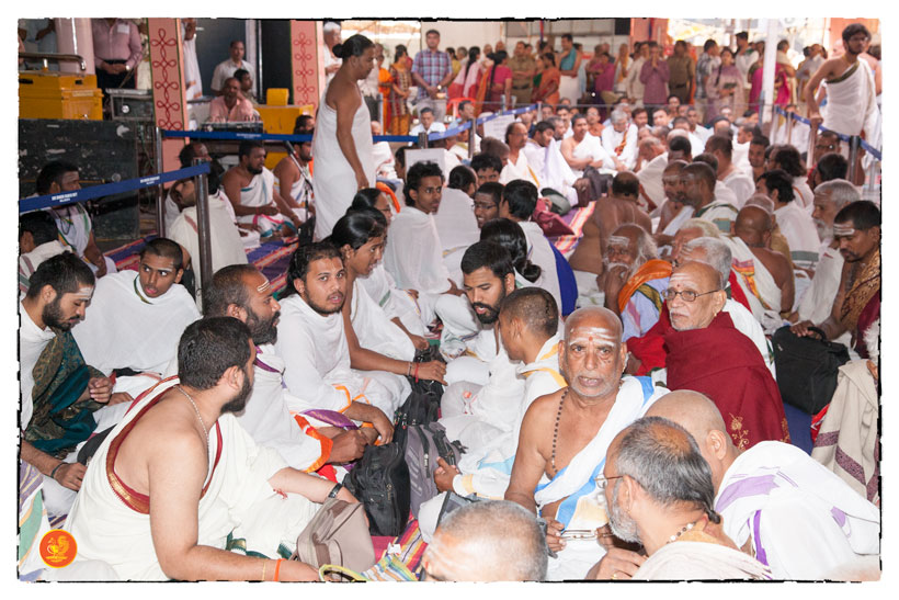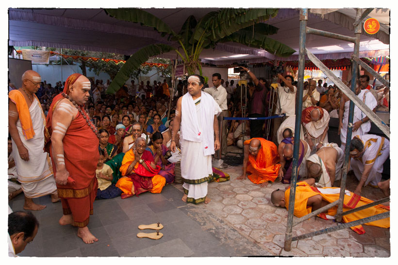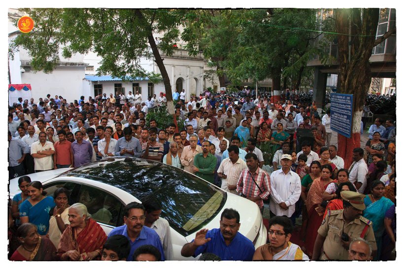 At the end of the Anugraha Bhashanam, the Jagadguru expressed great joy a the Shraddha and Bhakti of the thousands of devotees who came everyday to have His Darshan. Subsequently, the Jagadguru blessed the committee members, volunteers & the Math staff. The police and security staff received special blessings from the Jagadguru for efficiently and cleanly coordinating the movements of the Jagadguru during His numerous visits inside the city.