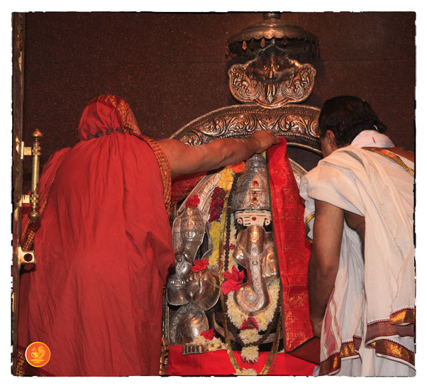 It has been a long felt desire of the devotees that a Ganapati temple adorn the Shankara Math premises in Nallakunta. What could be a more fitting occasion than the Vijaya Yatra of the Jagadguru to Hyderabad to have this desire fulfilled?