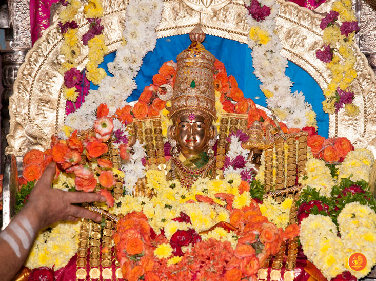 In the evening function to commemorate the event, Administrator and CEO of the Peetham, Sri V R Gowrishankar addressed the joyous gathering of devotees and mentioned that Nallakunta’s Sringeri Shankara Math closely adhered to all the ancient traditions of the Goddess Sharada Temple at Sringeri. He pointed out that the Hyderabad devotees had come together many times in the past to offer Ratha for the Goddess, and various jewels including Trishatimala, Ashtotramala just as they had all been offered in Sringeri.