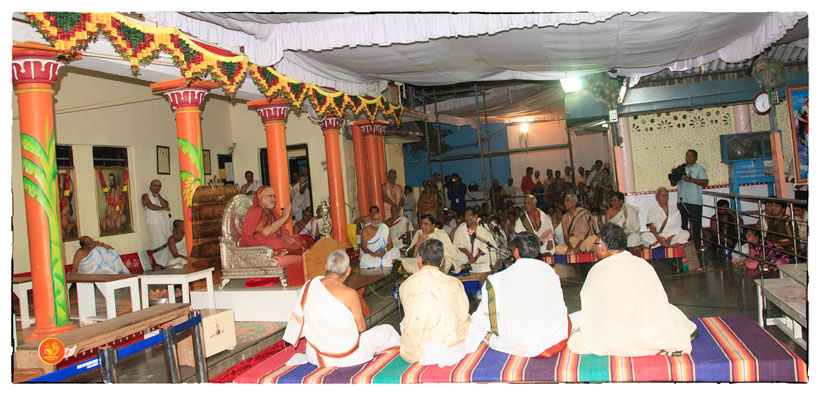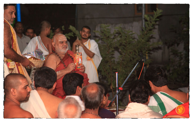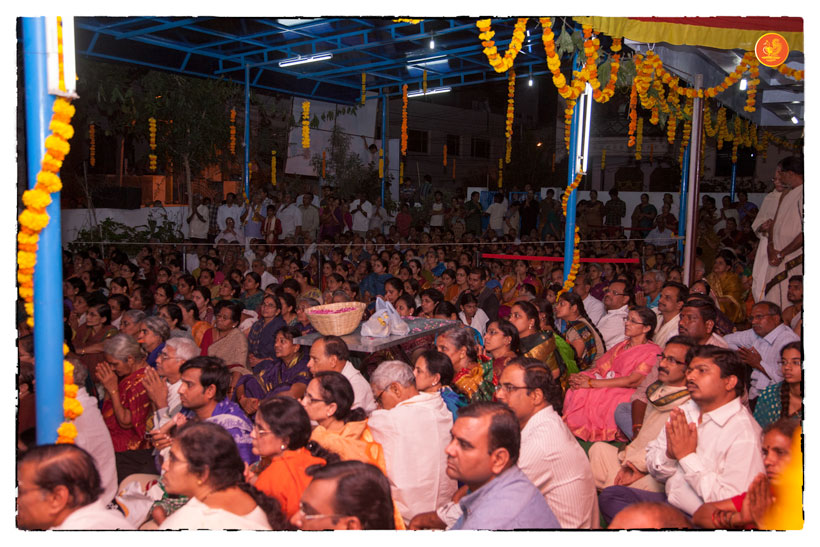 In His Anugraha Bhashanam, the Jagadguru praised the devotion of the residents of Bhagyanagaram. The Jagadguru referred to an illustration in Mimamsa Shastra where each day is considered equivalent to a year, and said that while He had been away from the city for 20 years, He had decided to stay and bless the devotees of Hyderabad for 20 days, as if equating each day to a year. It was evident that the devotees were overjoyed with the presence of the Jagadguru. Devotees later witnessed the Jagadguru performing the Sri Sharada Chandramoulishwara Puja.