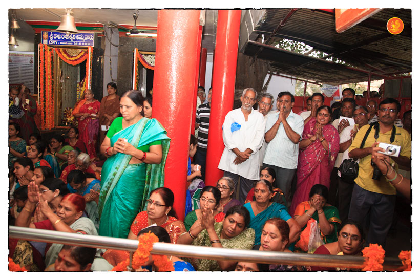 On 11th December, the Jagadguru again graced a few temples affiliated to the Peetham. The Jagadguru first had Darshan at Jnanasaraswati Temple, Musheerabad. The Jagadguru then visited the Kanaka Durga Temple, Vidyuth Soudha and Sri Rajarajeswari Devalayam, Mehidhipatnam. After that, the Jagadguru arrived at Sri Kanakadurga Nagalakshmi temple at Basheer Bagh. In His Anugraha Bhashanam in the premises of the temple, the Jagadguru stressed that we must follow the path set forth in our ancient Parampara and tread by our ancestors. If we deviate from this path, we would be akin to the moth that seeks out fire and perishes. All our Puranas and Itihasas are to instruct man to follow the path of Dharma. When even animals naturally live their lives in the way their earlier generations lived, why should man deviate from the principles and values that his ancestors have been adhering to, since time immemorial? The Jagadguru then spoke about the greatness of the Goddess and praised the efforts of the temple trustees to construct and maintain the Kanakadurga and Nagalakshmi temple against all odds.