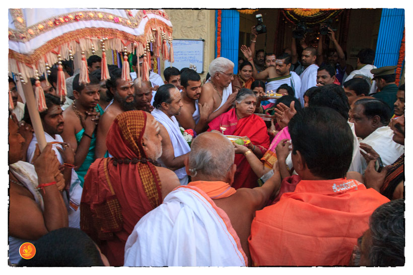 Sri Chandrashekhar Limbekar (son of late Raja Venkata Rao Limbekar, who donated the land and had the temples for Goddess Sharada and Adi Shankaracharya constructed) informed the gathering of the divine origin of the Nallakunta Math. Devotees who were closely associated with the Kumbhabhishekam function were then honoured and received the blessings of the Jagadguru.