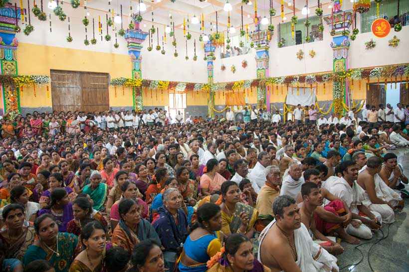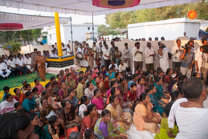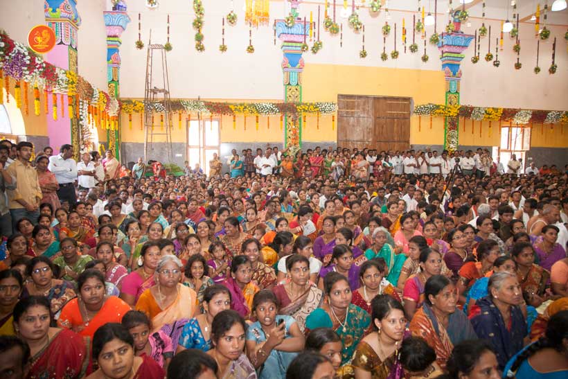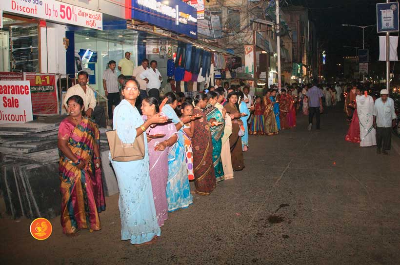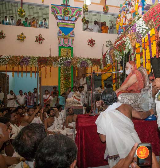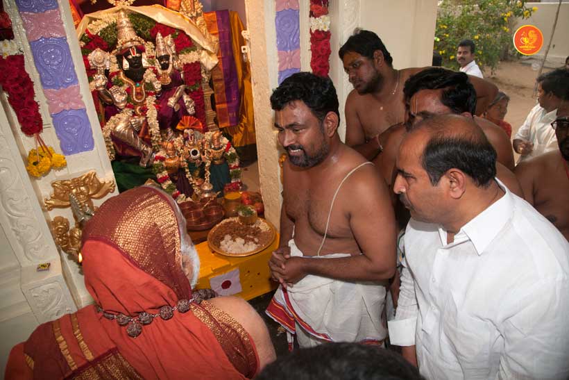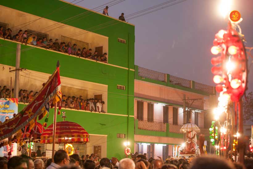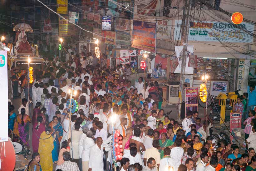 On 23rd March, the Jagadguru had Darshan at Vijaya Durga temple. In the afternoon, the Jagadguru started from Kadapa and graced Kamalapuram, another rural town. The Jagadguru had Darshan at Lakshmi Narasimha Swamy temple, Kamalapuram and blessed the devotees with an Anugraha Bhashanam.