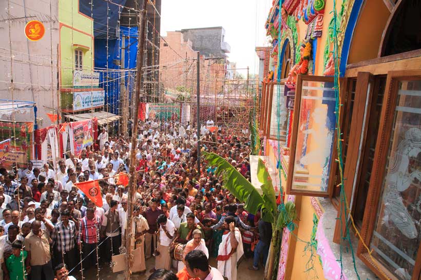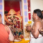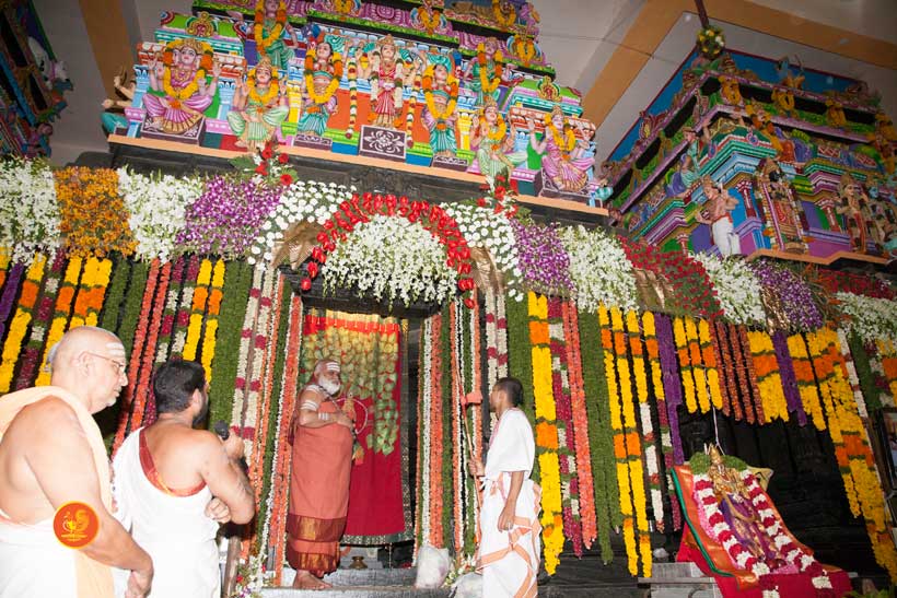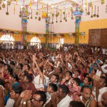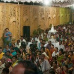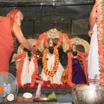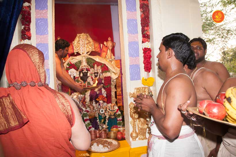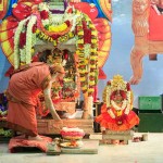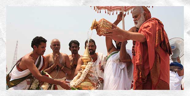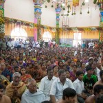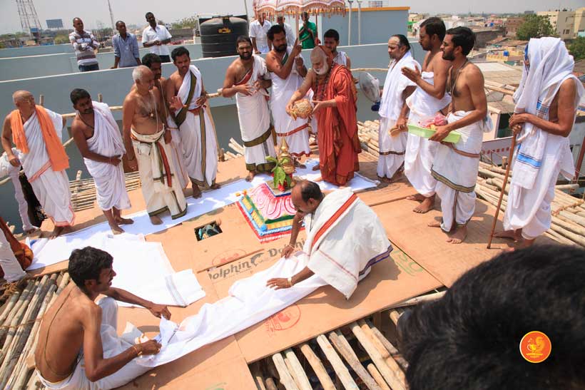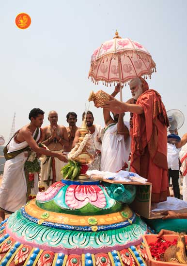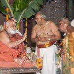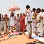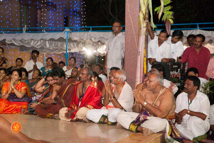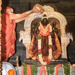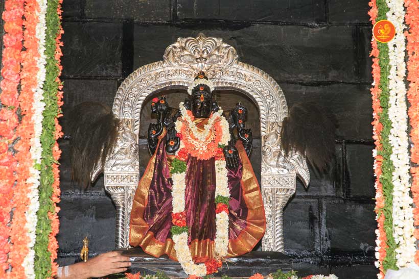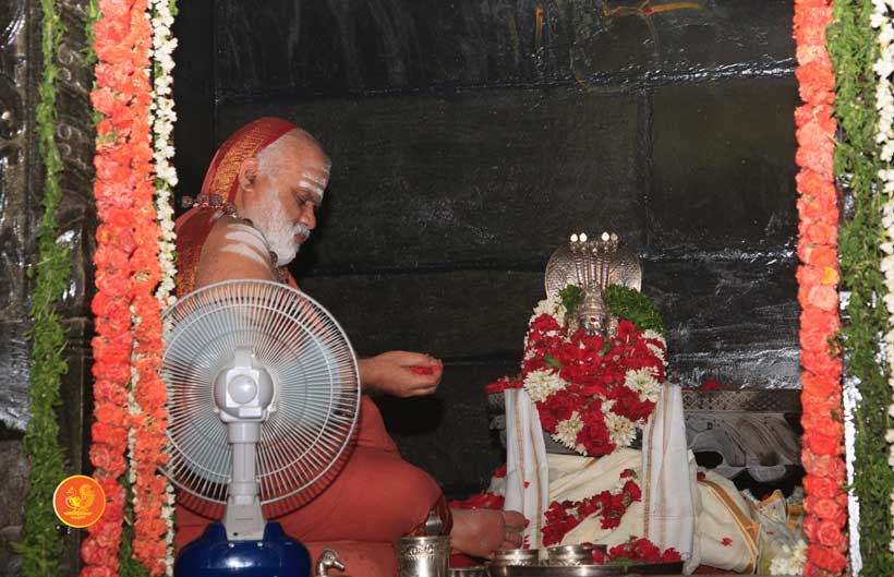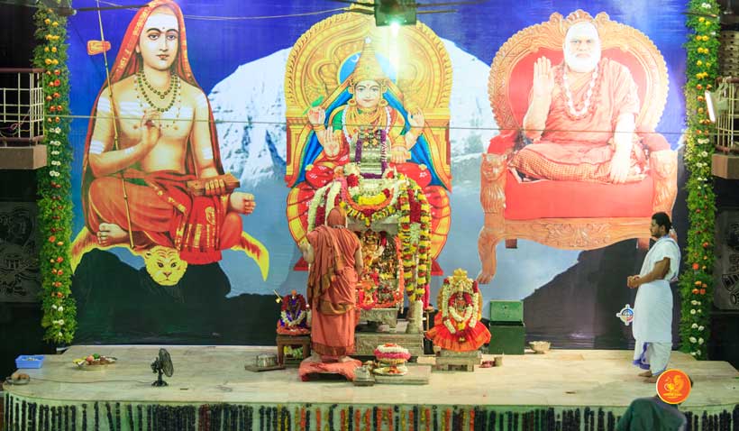 On 22nd March, the Jagadguru performed the Punah Prathishta Kumbhabhisheka of Vasavi Kanyaka Parameshwari at Kadapa. The Jagadguru also consecrated shrines of Sri Chandramoulishwara and Sri Ramachandra Swamy adjacent to the main shrine of Sri Vasavi Kanyaka Parameshwari. After performing the Shikhara Kalashabhisheka to the Vimanas of the three shrines, the Jagadguru in His Anugraha Bhashanam said that it was fitting that a shrine for Lord Shiva and one for Lord Vishnu (Ramachandra Swamy) had been established in the temple, as if to indicate the essence of Sanatana Dharma — the two forms are but one and the same. The Jagadguru expressed great joy at the devotion of the tens of thousands of devotees who attended the occasion, and blessed that the deep Guru-Shishya relationship between the Sringeri Jagadgurus and the community in Kadapa continue to thrive.