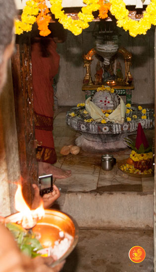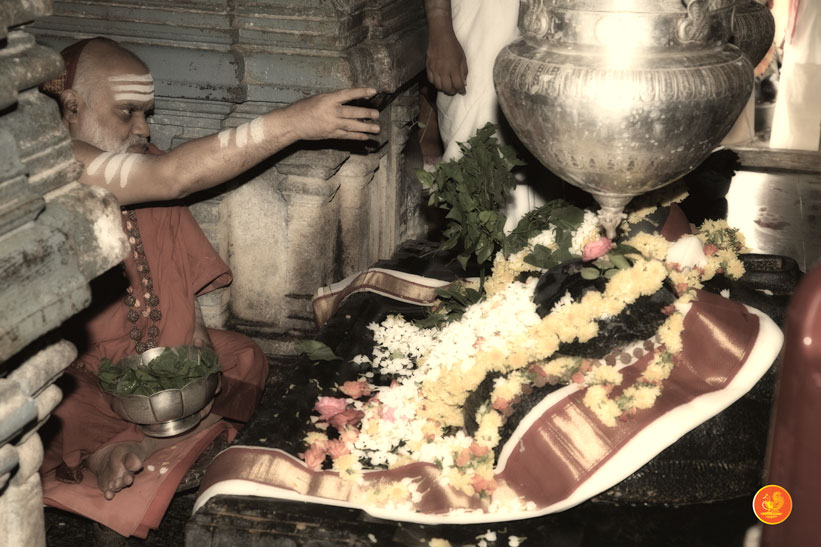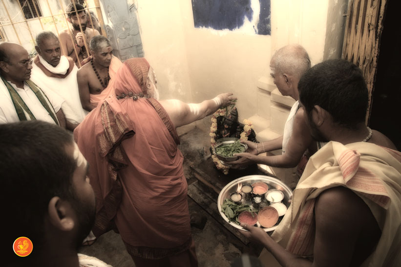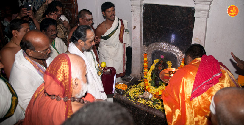On 29th December 2012 the Jagadguru offered Puja to Kaleshwara and Mukteeshwara. The Jagadguru also worshipped Goddess Parvati. The Jagadguru then went to the temple of Sri Adi Mukteeshwara and had Darshan. Close to this temple, the Jagadguru laid the foundation stone for Sringeri Shankara Math at Kaleshwaram. The Jagadguru returned to give Darshan to the devotees. Later, the Jagadguru had Darshan in the temple for Goddess Saraswati, adjacent to the Kaleshwaram temple.