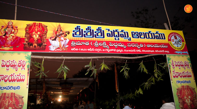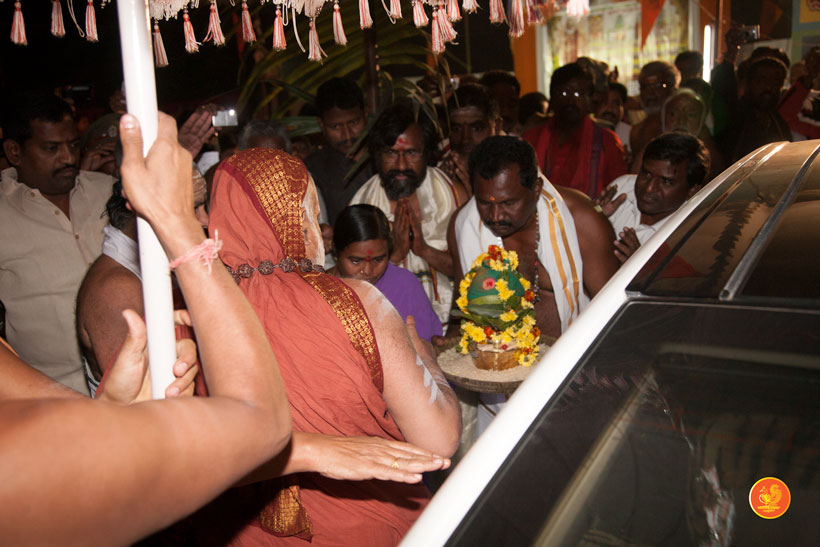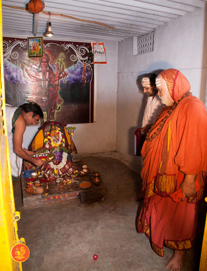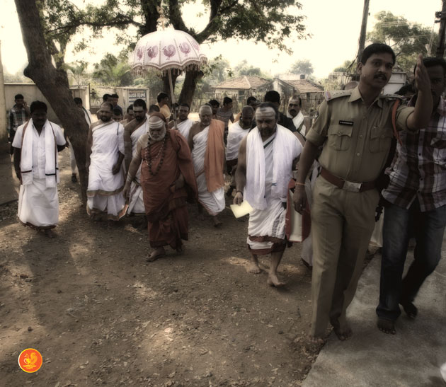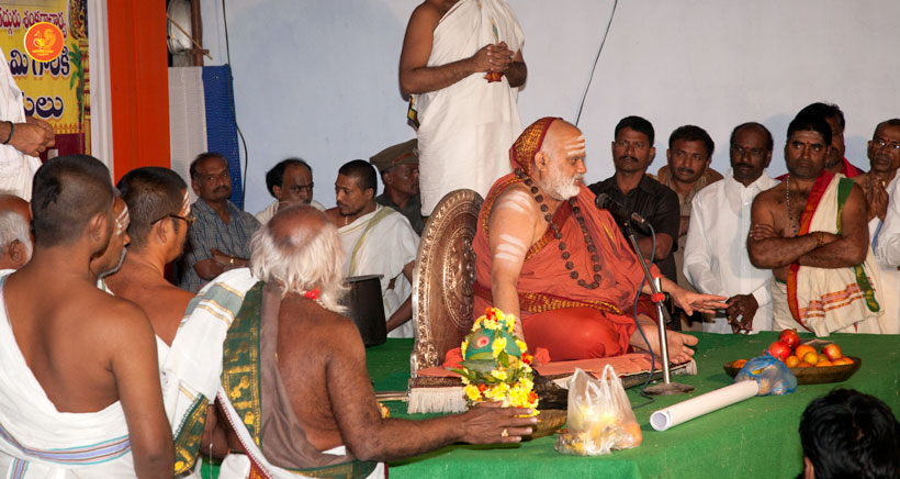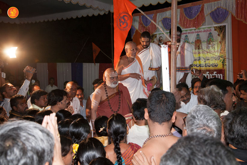 In the afternoon, the Jagadguru started towards Chennur. Enroute, the Jagadguru had Darshan at Ishwara temple, Mahadevapur and at Peddamma Aalaam, Godavarikhani.