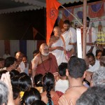 The Jagadguru also remarked that this Kshetram is a very prominent one as the deity here is very powerful. With the intent that we should worship and be blessed by Ishwara here, this temple has been restored from a state of ruins. The Jagadguru mentioned that whenever He came to this region, He desired to worship Sri Kaleshwara – Sri Mukteeshwara of Kaaleshwaram. All the people here realize that it is because of the Sringeri Jagadgurus that this place has come to this position and hold the Jagadgurus in high esteem. The Jagadguru ended the Anugraha Bhashanam praising the respect and honour of the residents of Kaleshwaram to the Sringeri Jagadguru Parampara.