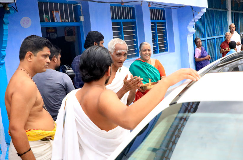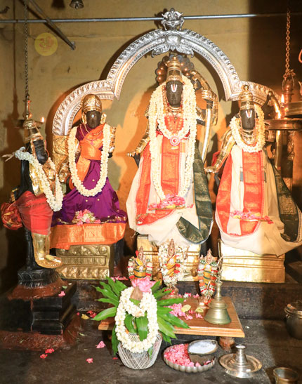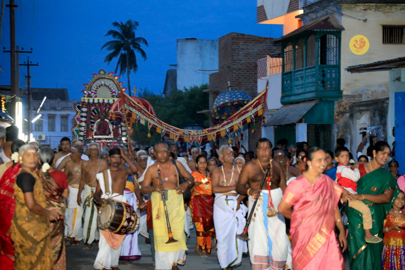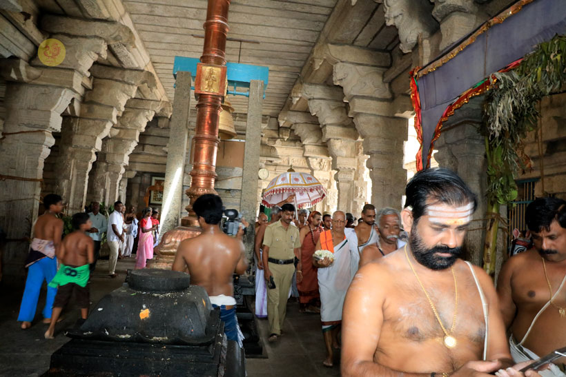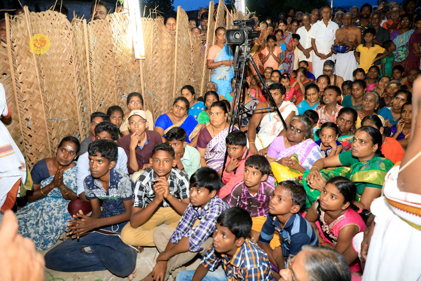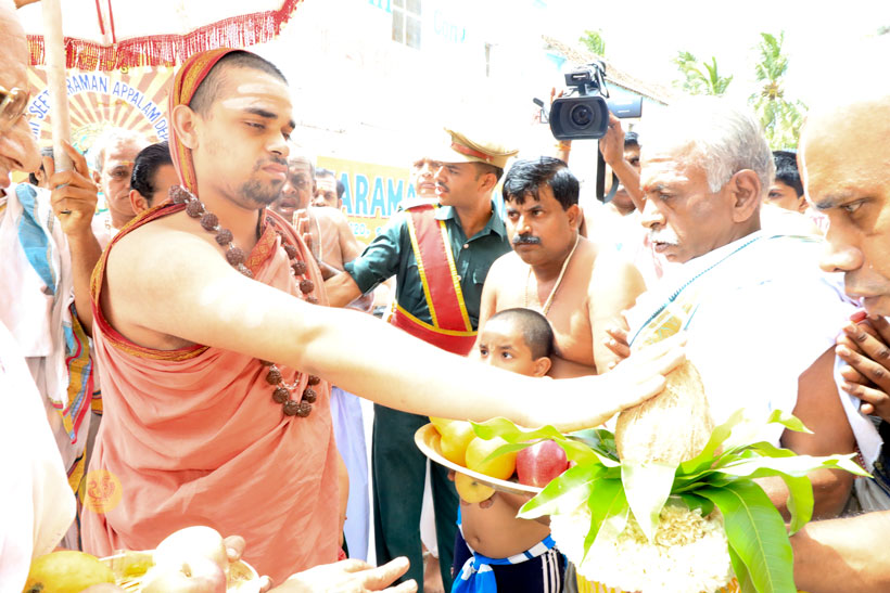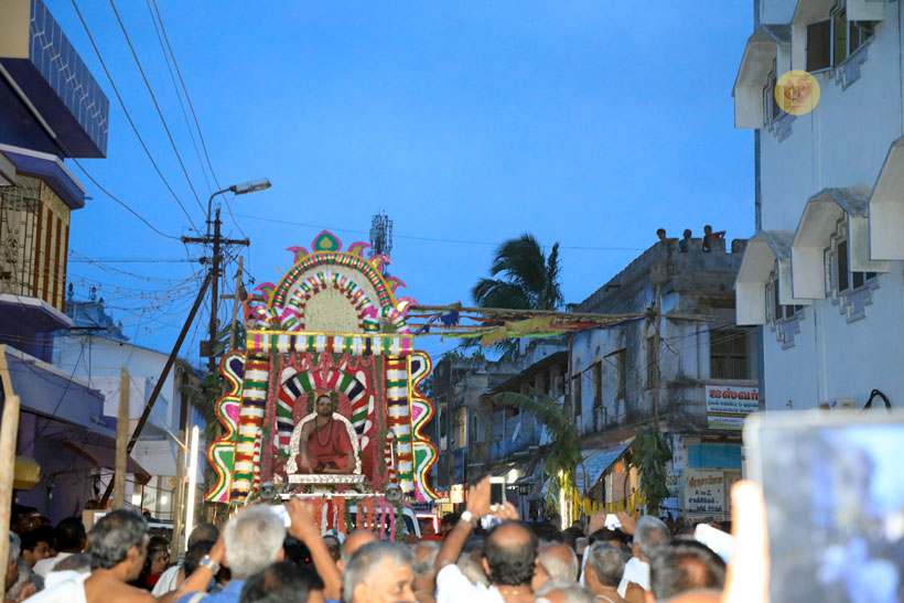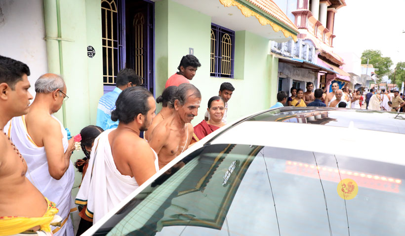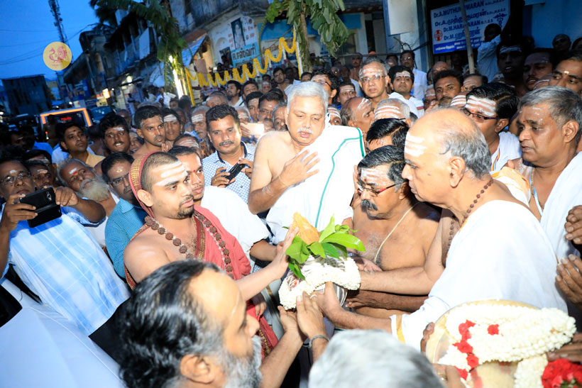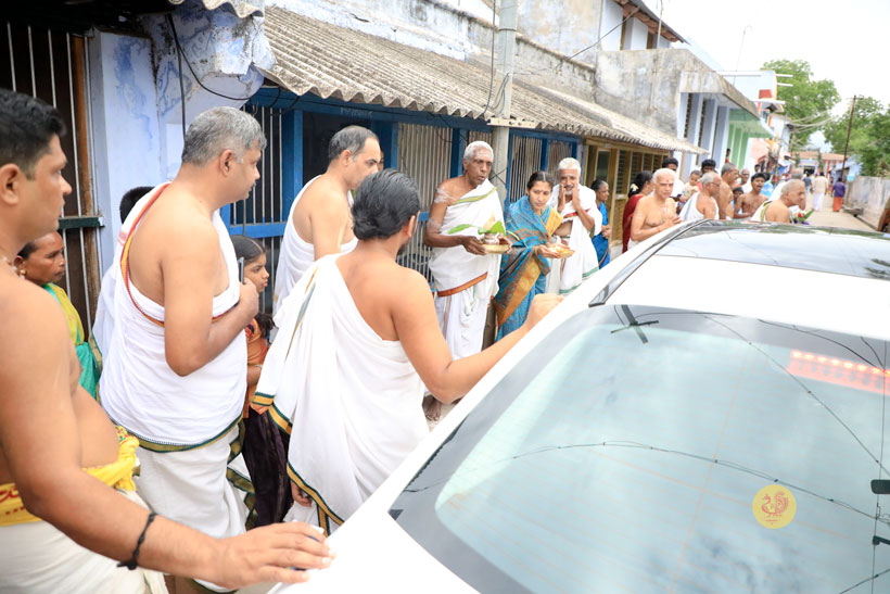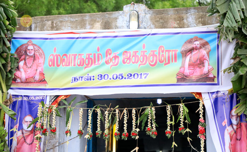 Devotees in the Agrahara of Kallidaikurichi welcomed the Sringeri Jagadgurus in the evening of May 29, 2017. Sri Sannidhanam was led in a procession through the streets of the Kallidaikurichi Agrahara. The Ubhaya Jagadgurus then had Darshan at the shrines of Sri Valamburi Vinayakar and Sri Kothanda Ramar.