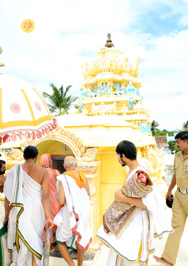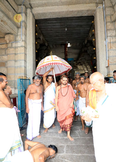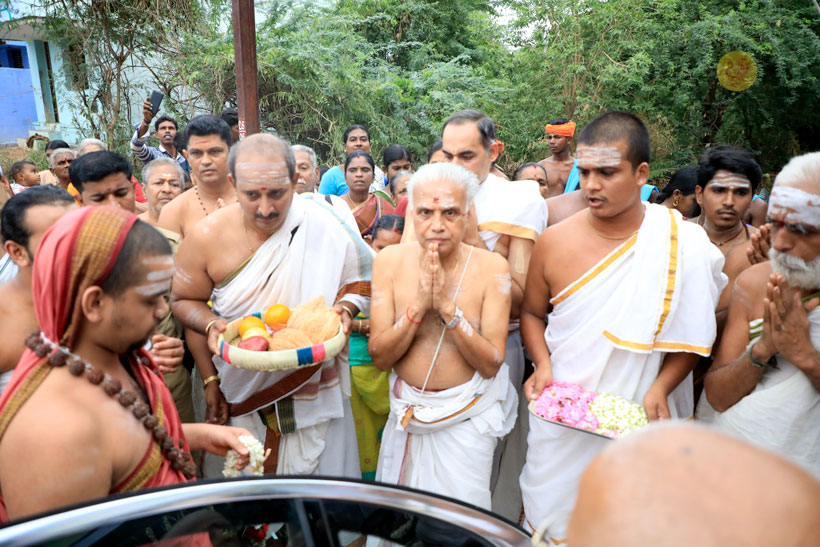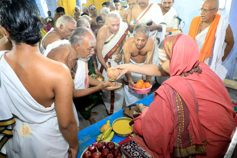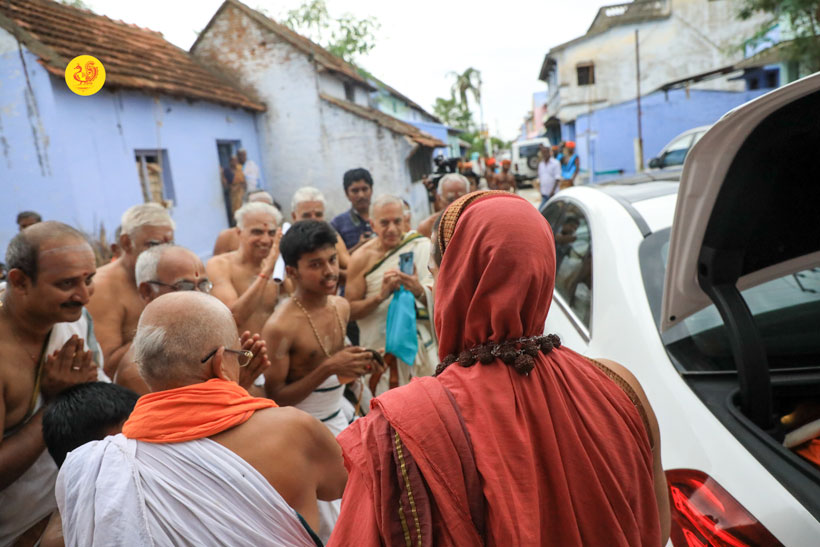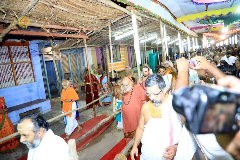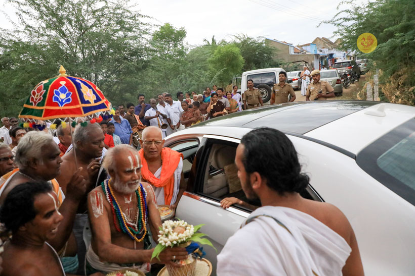 In the afternoon, Sri Sannidhanam graced villages of Brahmadesham, Rangasamudram and Pappankulam. At Brahmadesham, Sri Sannidhanam had Darshan of Sri Rukmini Satyabhama Sameta Sri Krishna Swamy temple.