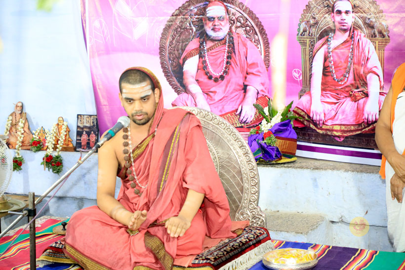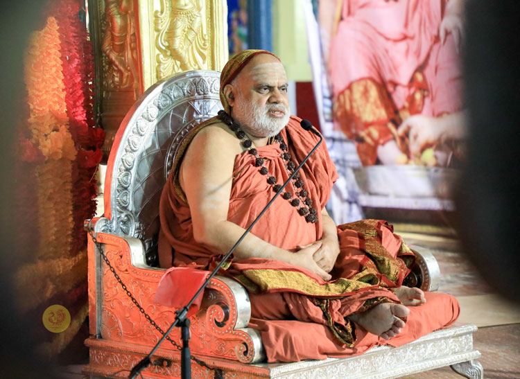 Sri Mahasannidhanam in His Anugraha Bhashanam spoke about the greatness of Sri Adi Shankaracharya. In his brief life of 32 years, the great Acharya mastered the Vedic literature, wrote commentaries of the highest order, penned many Vedantic works and devotional hymns, traversed the land thrice on foot, established with great foresight the four Amnaya Peethams and ascended the Sarvajna Peetham (the seat of Omniscience) in Kashmir. It is a matter of astonishment and even disbelief as to how a person could accomplish so much in such a short lifespan. Drawing parallels from the miraculous deeds of Sri Krishna Paramatma, Sri Mahasannidhanam stated that it can be discerned similarly that Sri Adi Shankaracharya was a divine incarnation.