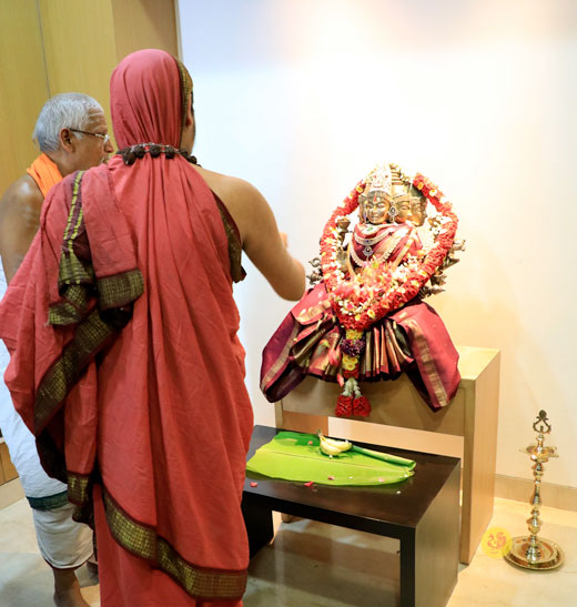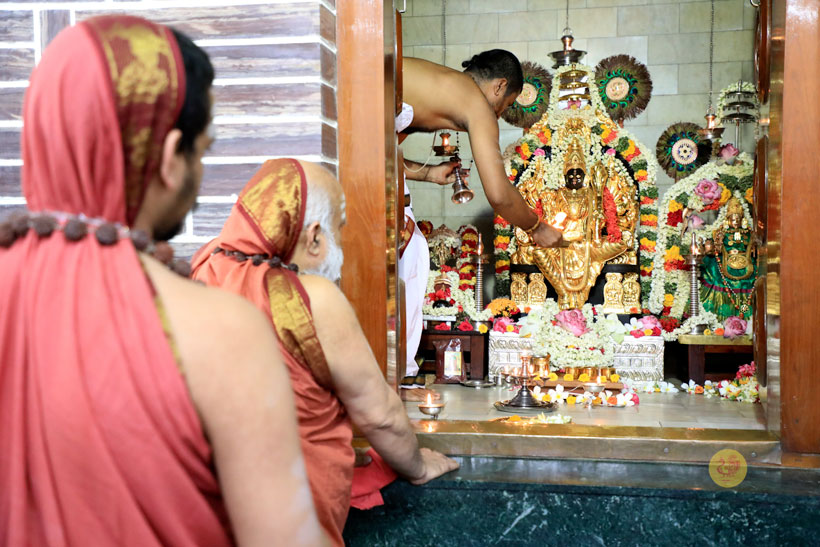 On May 5, the Jagadgurus first had Darshan of Goddess Rajarajeshwari at the Sringeri Shankara Math in Karur. The Jagadgurus then gave Darshan to devotees. Pada Puja and Bhiksha Vandanam were performed.
