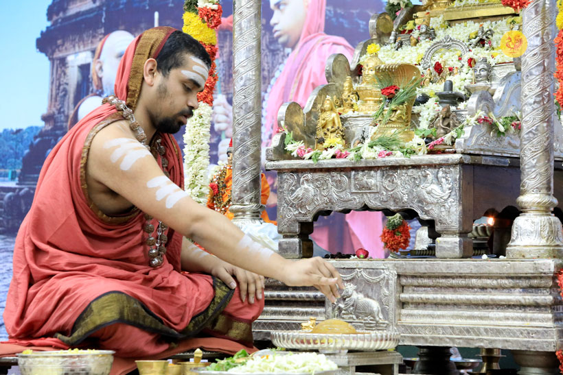 Sri Sannidhanam in His Anugraha Bhashanam said that the Lord though Nirguna – attributeless – takes on forms and attributes to grace Sadhakas. Not all can do Nirgunopasana (worship of the Divine sans attributes). Even in Sagunopasana – worship of the Divine with attributes, the Lord is full of splendour that He seems indescribable – That is why a devout poet expressing his inability to sing the Lord’s praises says – “I have neither classified the Vedas like Veda Vyasa, nor extolled the Lord’s greatness like Maharshi Valmiki, nor am I Lord Brahma nor am I Maharshi Patanjali who wrote the Mahabhashya (commentary on the Vyakarana Sutras), nor am I like Shukha Maharshi who extolled the Lord in Srimad Bhagavatam. How am I, O Lord, to sing Your praises?” –
