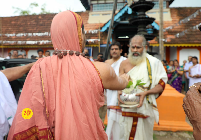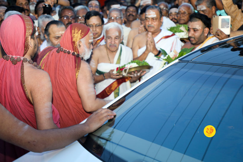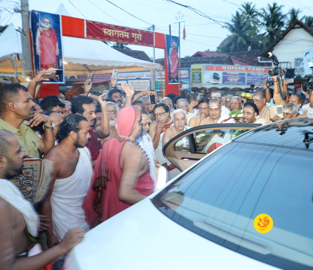 After granting Darshan to the devotees and blessing them with Mantrakshata, the Jagadgurus started for Ernakulam in the early evening.