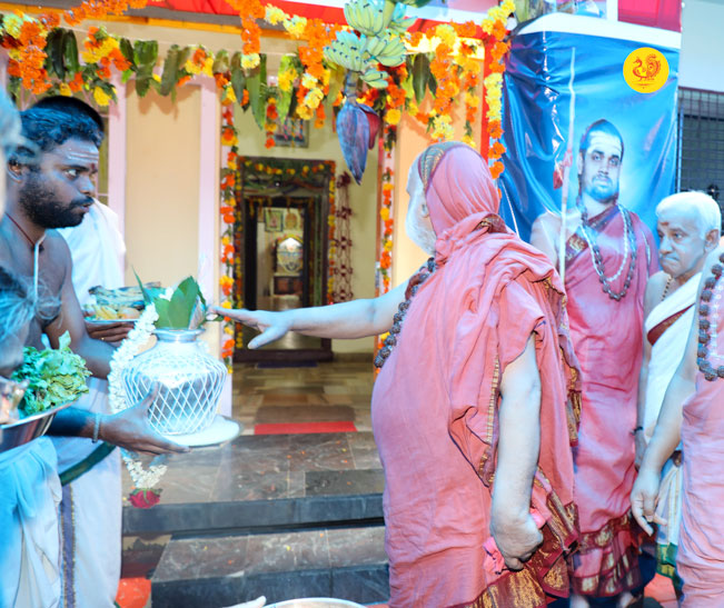 Sri Mahasannidhanam in His Anugraha Bhashanam explained the greatness of the Avatara of Sri Adi Shankara Bhagavatpada. During the Anugraha Bhashanam, Sri Mahasannidhanam mentioned that there are many who teach the Vedas and many others who support Vedic education. However times have come that even such people hesitate to send their own child to study the Vedas. Sri Mahasannidhanam stated that we must understand the importance of the Vedic tradition and imbibe it in our lives.