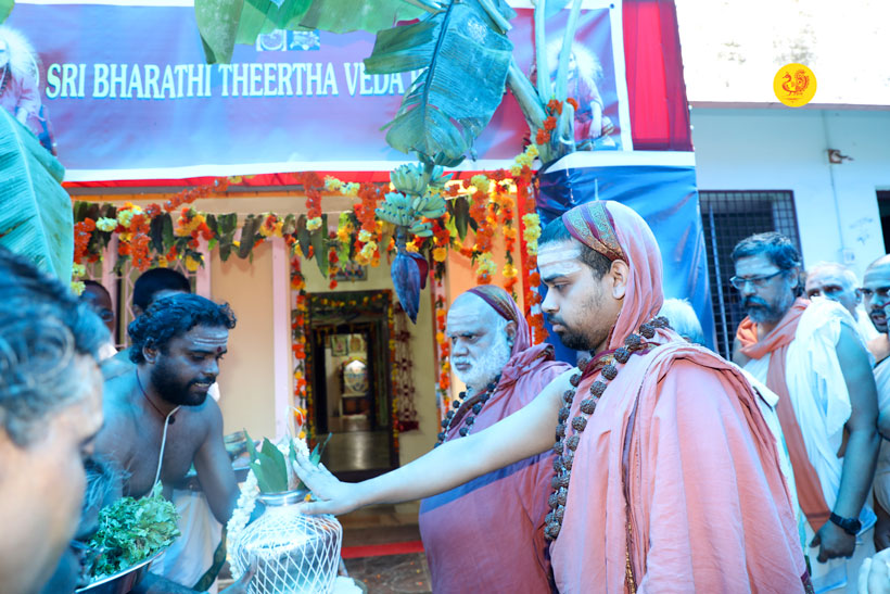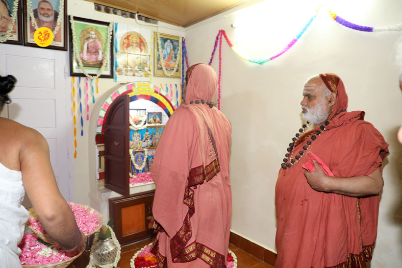 Thereafter, Sri Mahasannidhananam and Sri Sannidhanam graced the Sri Bharati Tirtha Veda Pathashala run by Sri Ramalingam, Vice President, All India Brahmins’ Federation and blessed the Adhyapaka and Vidyarthis. The Jagadgurus then inaugurated a Vriddhashrama named Sri Sharada Chandramoulishwara Niketan.