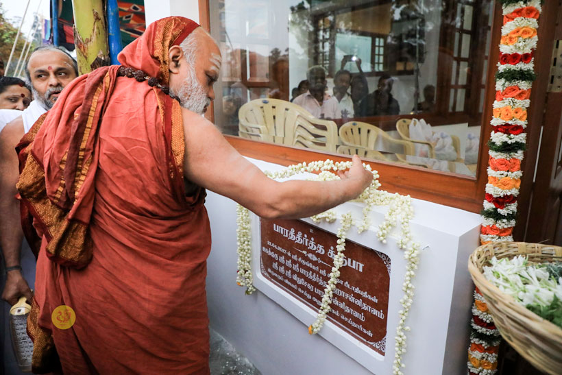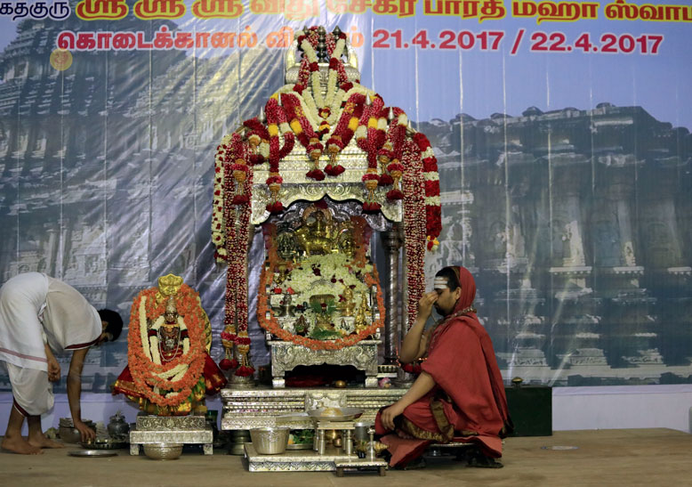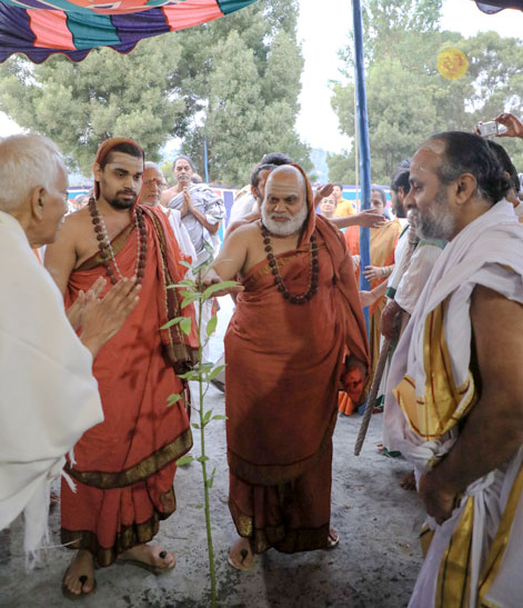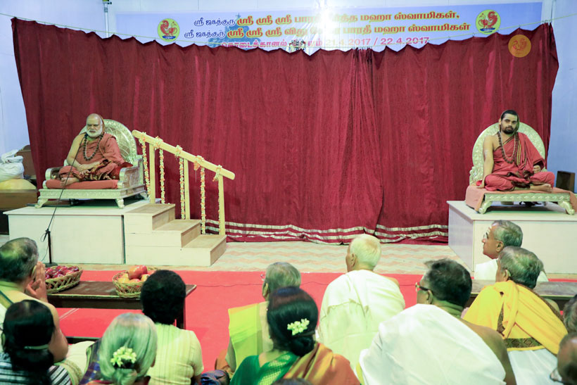 Sri Mahasannidhanam and Sri Sannidhanam arrived at the hill station of Kodaikanal to a warm welcome by devotees at around 6:30 pm on April 21, 2017. Sri Mahasannidhanam inaugurated a building named “Sri Bharati Tirtha Kripa”. After Dhuli Pada Pooja by Sri Bharatan, Veda Ghosha and prayer took place in the public function organised on the occasion. Swagata Patrikas were read in Sanskrit and Tamil to welcome the Jagadgurus to Kodaikanal. Sri Mohan Srinivas and Sri Dinakaran of Aruppukkottai spoke on the occasion offering their Pranams to the Jagadgurus.