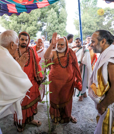 In order to uplift the jivas who are struggling in the boundless dense forests of ignorance and suffering due to the flames of the forest fire of Samsara, Lord Parameshwara (Dakshinamurti) left His place under the banyan tree, gave up remaining silent and moves around the word in the form of and moves around in this world as Shankaracharya.