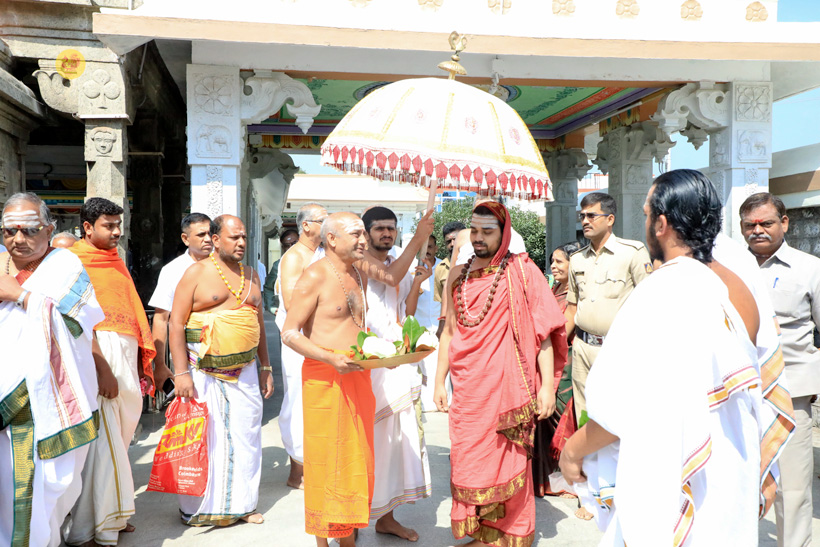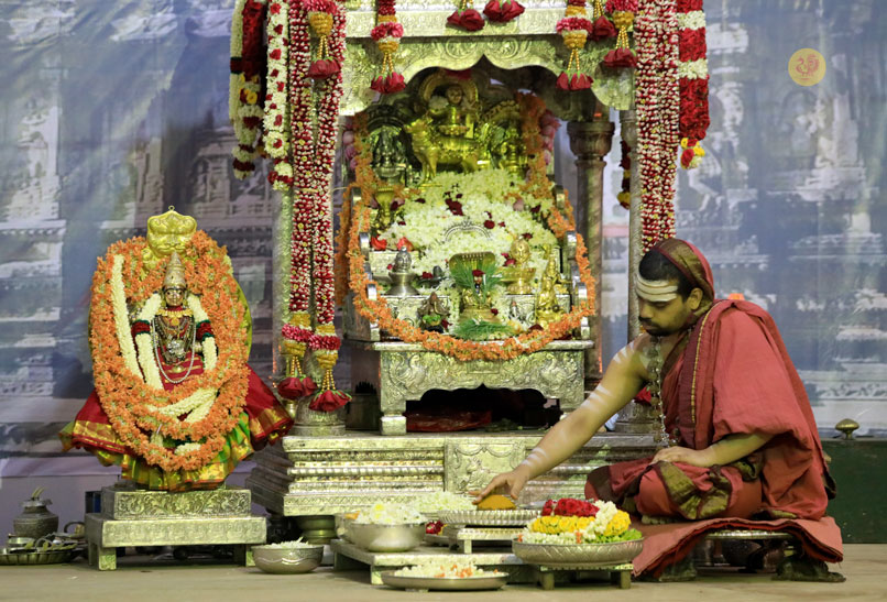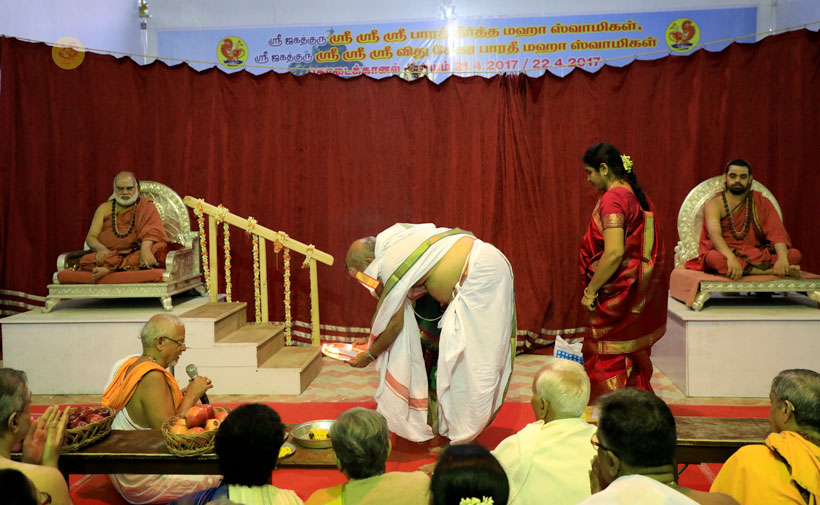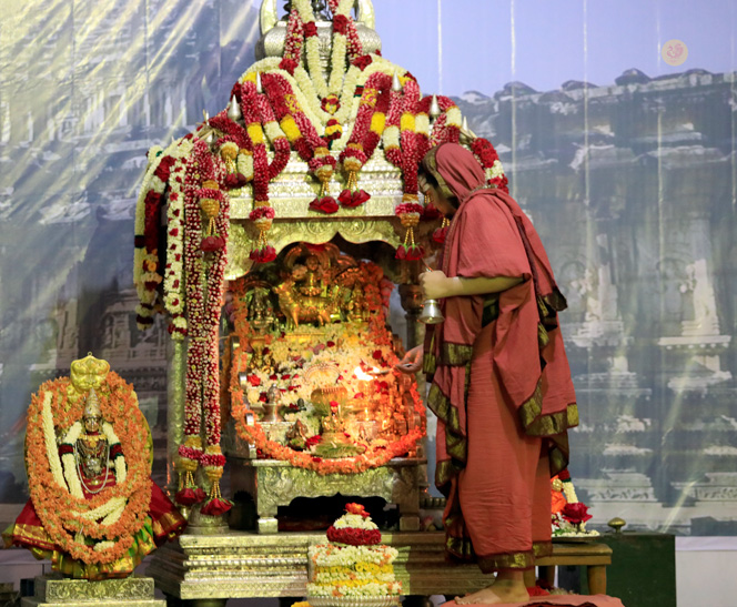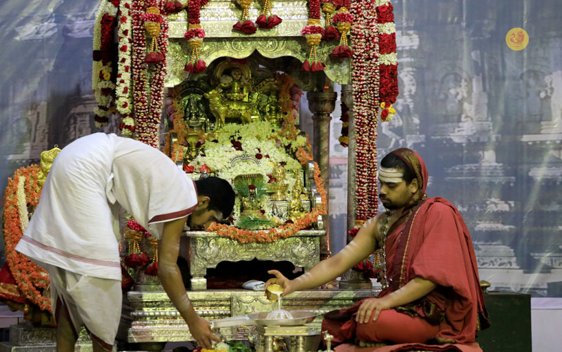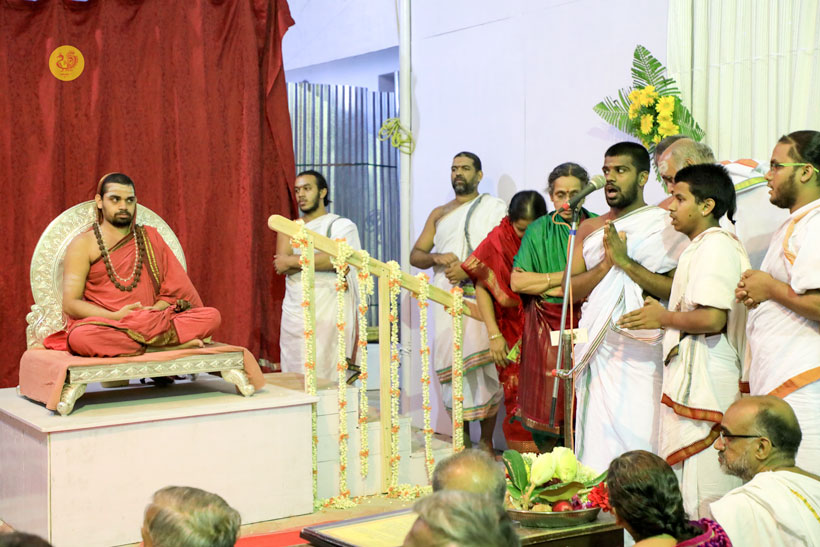 Later that evening, Sri Sannidhanam performed the Chandramoulishwara Pooja and Sri Chakra Pooja.