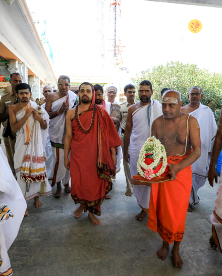 The following morning, Sri Sannidhanam had Darshan at the Kurinji Aandavar temple. After granting Darshan to devotees in Kodaikanal in the forenoon, the Ubhaya Jagadgurus started for the famous Kshetram of Palani in the afternoon.